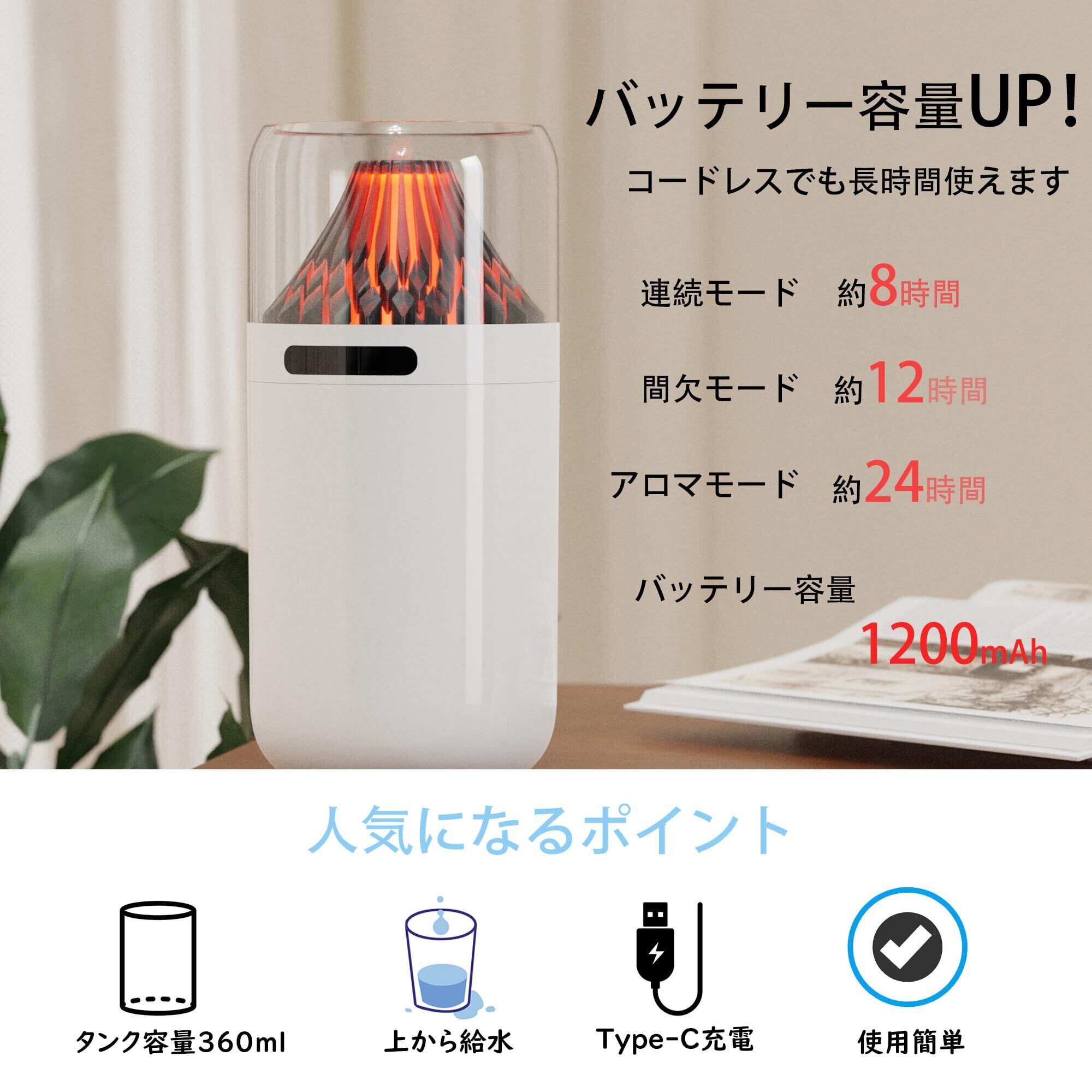 【超音波式&使いやすい】: 超音波の力で水を超微細ミストにして加湿。360mlの水タンクを使用し、一回の給水で最大8時間分の加湿が可能。操作はワンボタンで簡単。