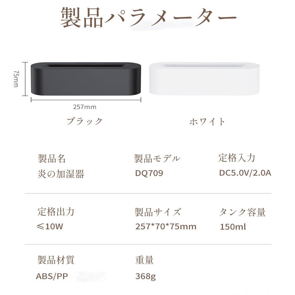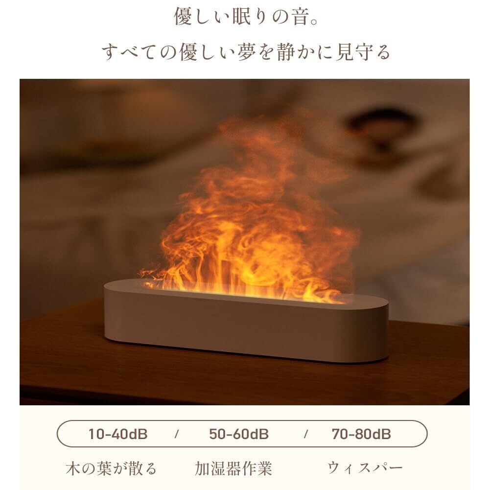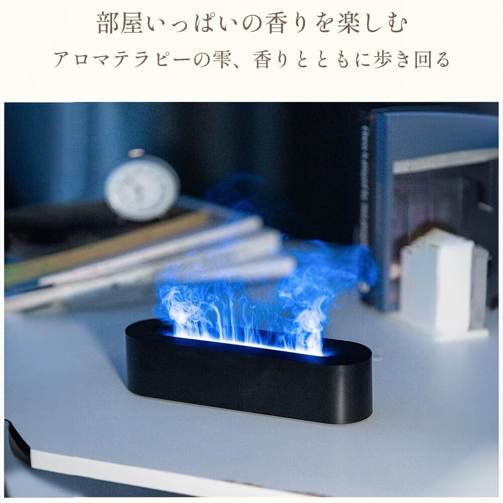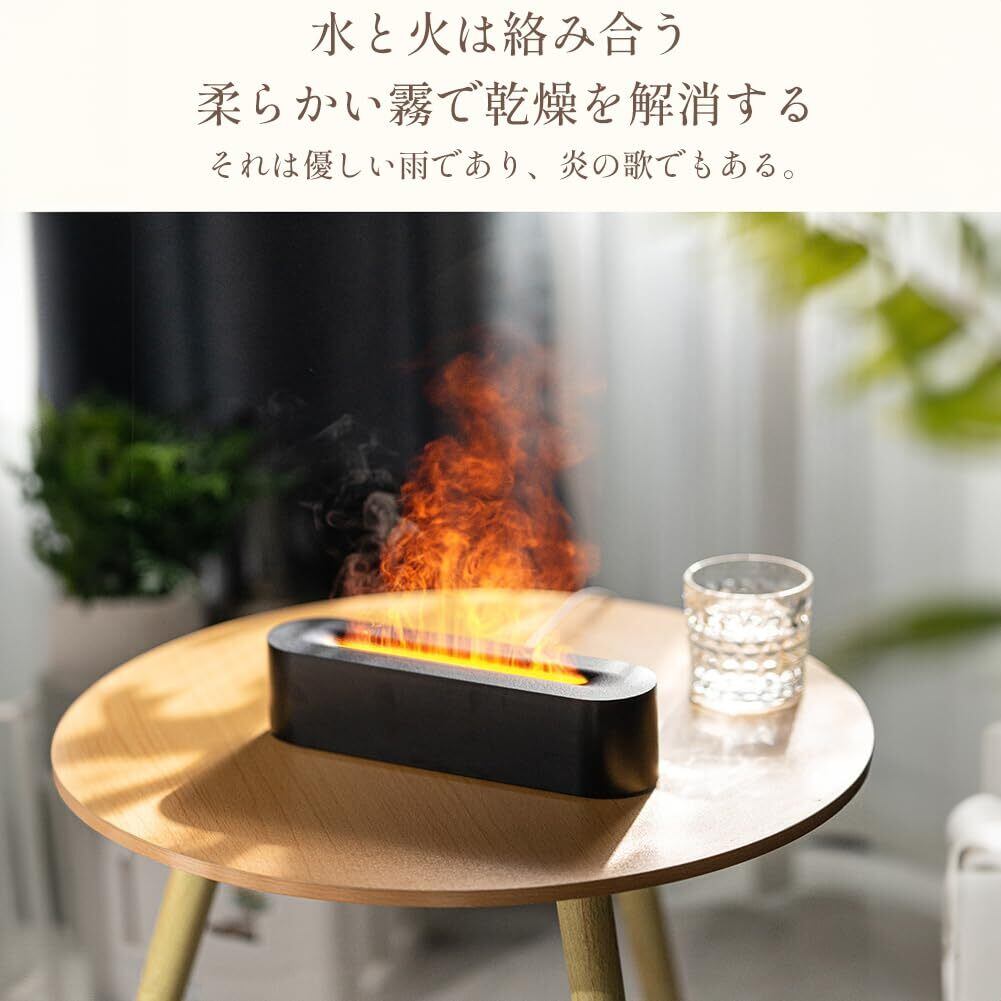 炎 加湿器 アロマディフューザー 卓上 超音波式 小型 静音 7色LEDライト Type-C給電 空焚き防止 自動OFF 寝室/オフィス用 乾燥/花粉症対策 PSE認証 日本語説明書付き(ブラック)