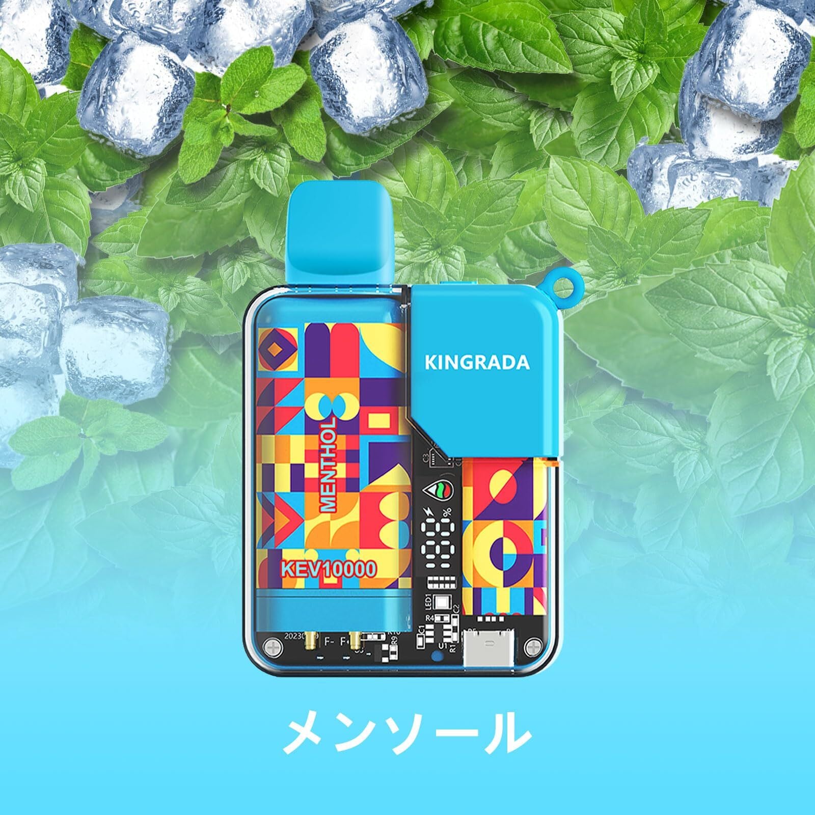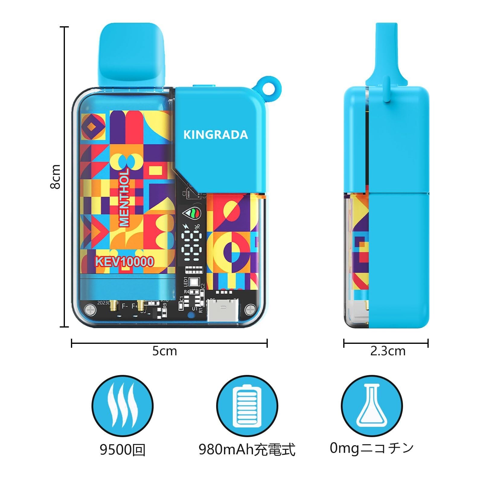 電子タバコ VAPE ベイプ シーシャ 9500回吸引可能 10風味 爆煙 大容量 使い捨て LEDモニター搭載 持ち運び 特製リキッド 水蒸気たばこ 禁煙サポート ニコチンなし 煙量調節可能 ストラップ付き Kingrada 13 Pro (メンソール) | kki