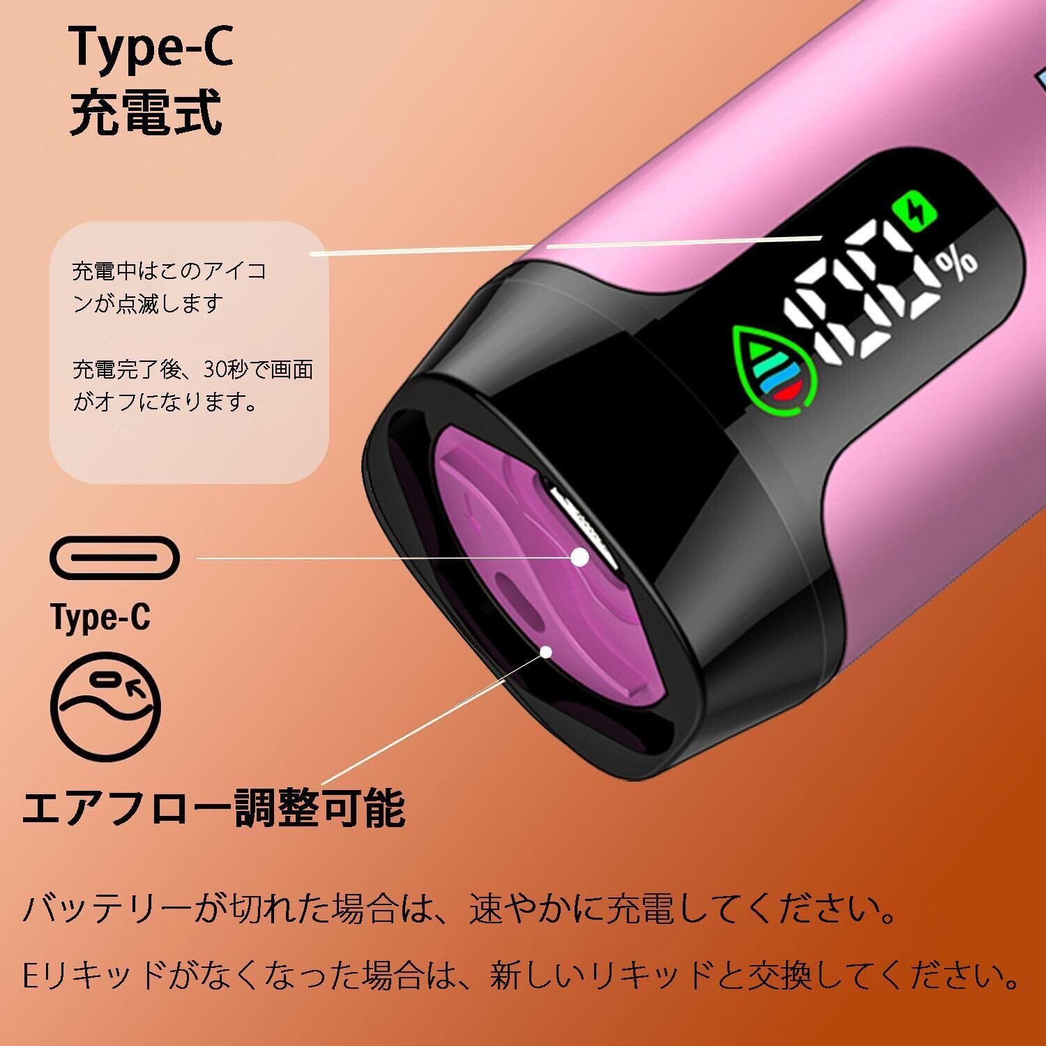リアルタイム モニタリング: この水蒸気タバコは、バッテリーと電子液体の両方のレベルを表示する画面があり、使用中にバッテリーの状態と電子液体の消費量をはっきりと確認できます。さらに、このデバイスは Type-C 充電ポートを備えており、素早く簡単に充電できます。(充電ケーブルは付属していません)