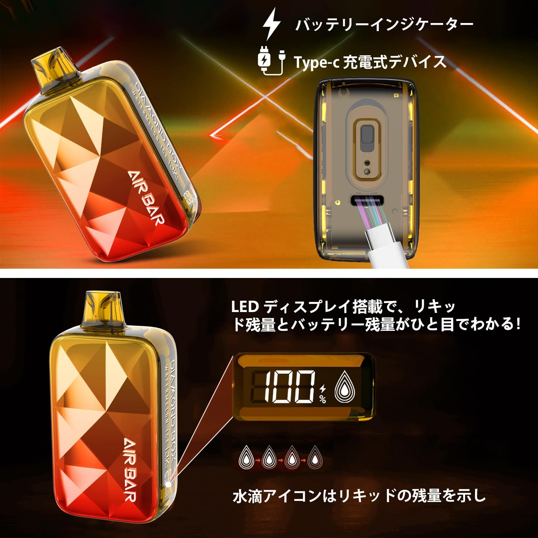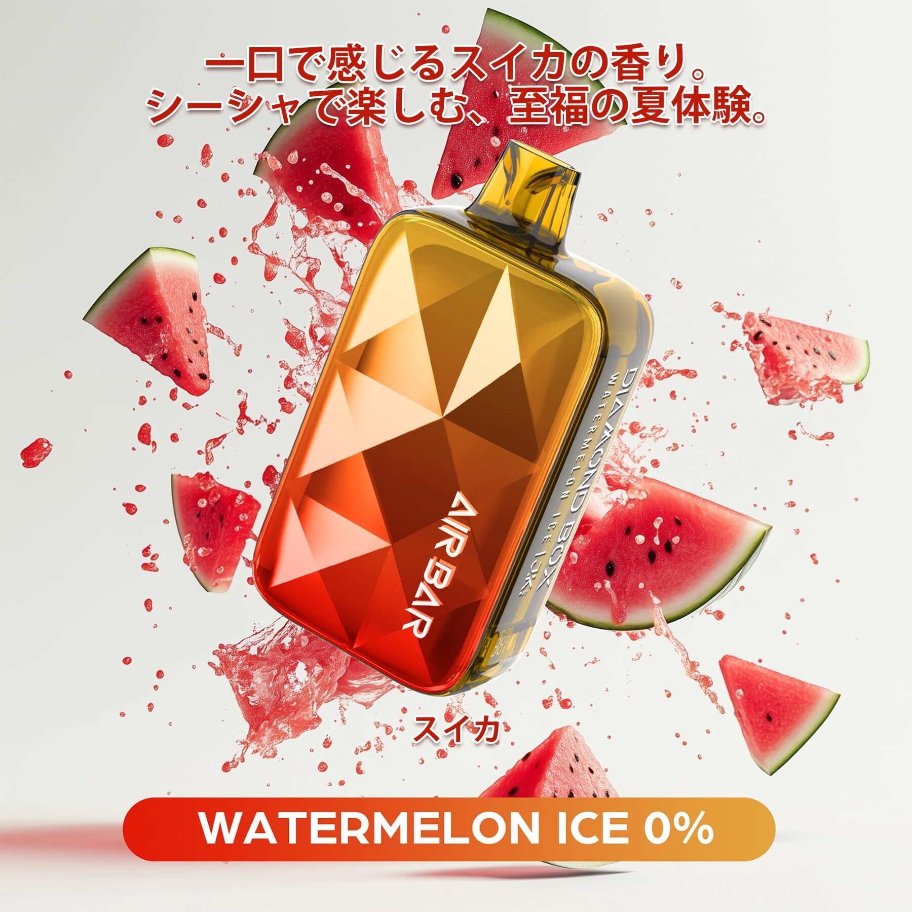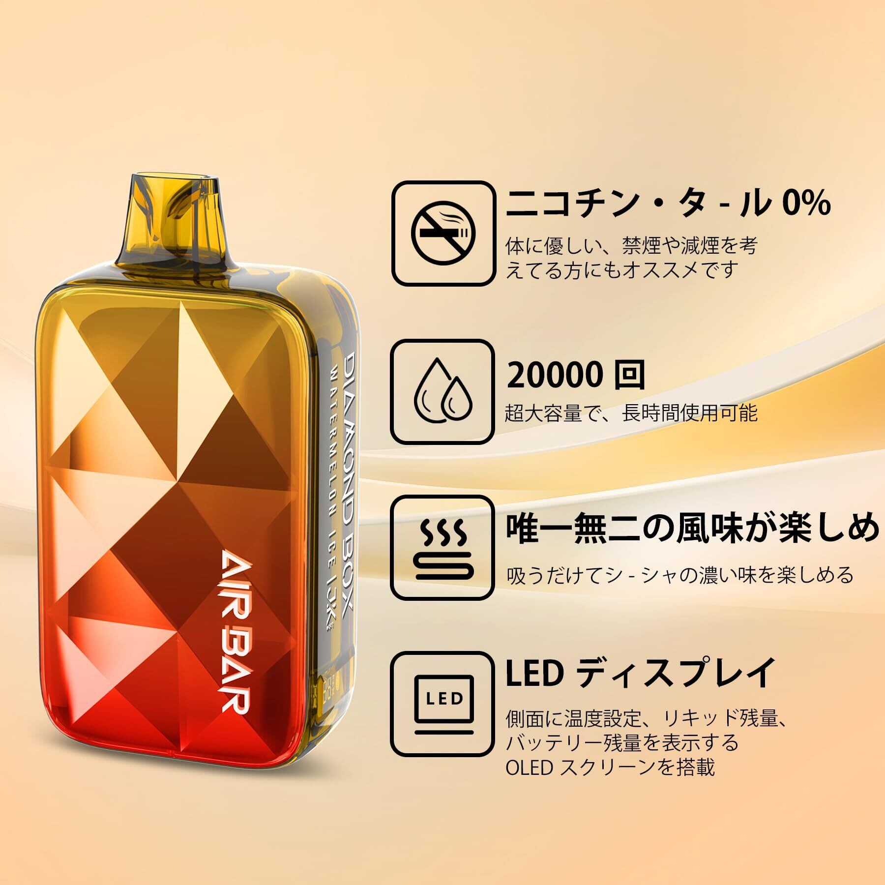 AIRBAR 電子タバコ シーシャ Diamond Box スイカ 20000回吸引可能 使い捨て 大容量 煙量調節可能 充電式 持ち運び 電子たばこ LED液晶付き 3風味 爆煙 ベイプ 本体 VAPE 人気 ニコチンなし タールなし 禁煙 サポート 節煙