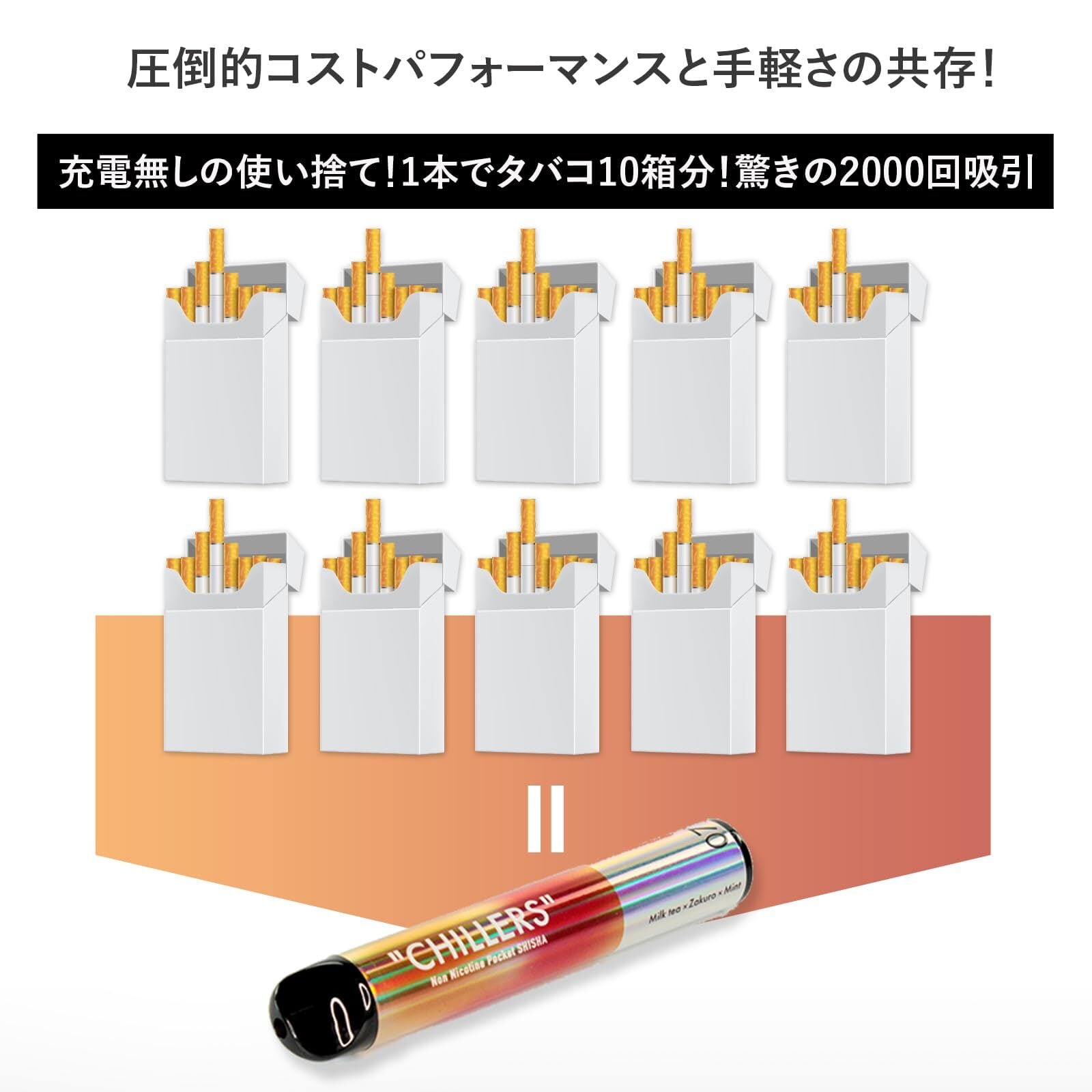 CHILLERS 深田えいみコラボフレーバー 電子タバコ 禁煙 シーシャ チラーズ 持ち運びシーシャ ポケットシーシャ VAPE 爆煙 電子タバコ使い捨て chillers 2000回 エジプトミント