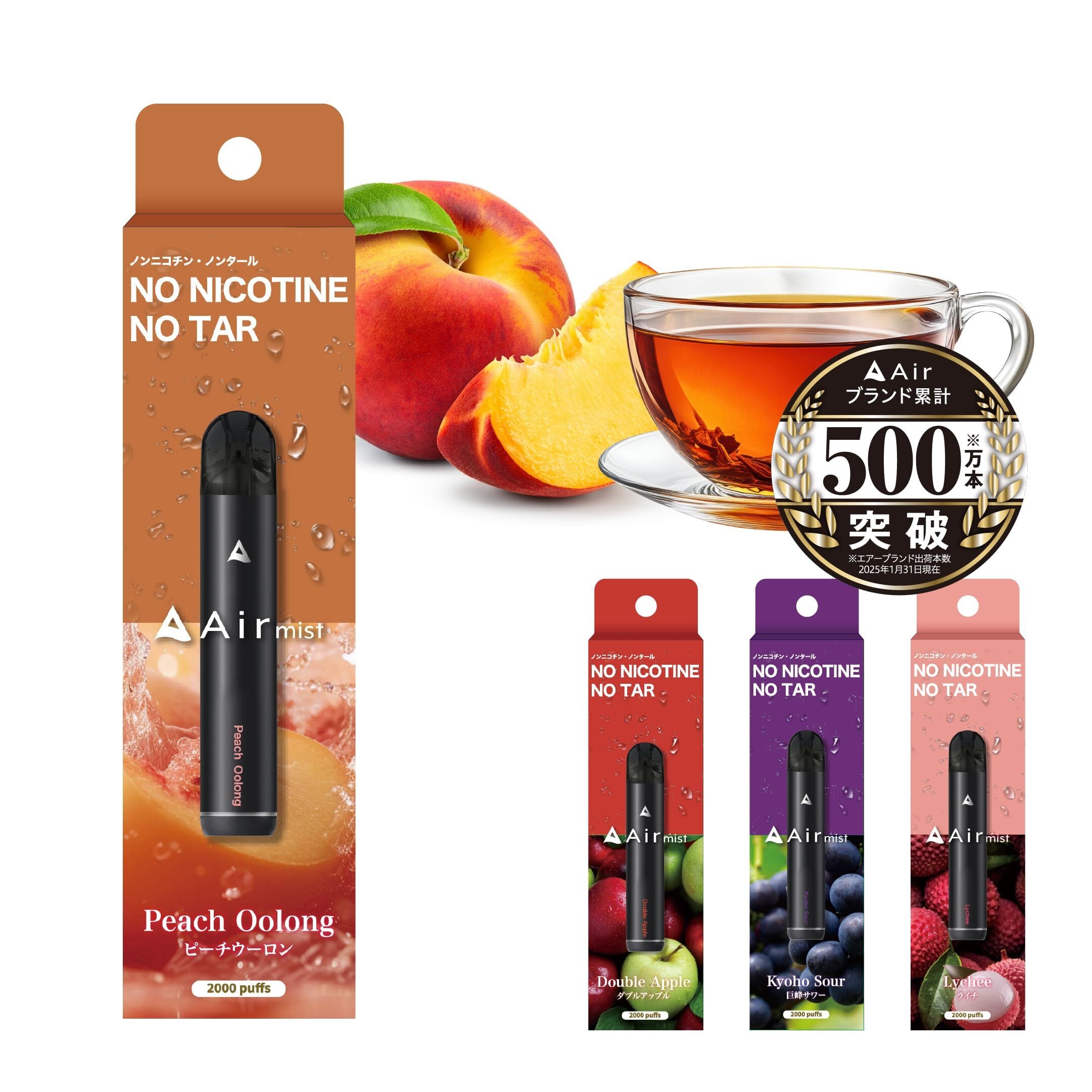 【公式】 全6フレーバー Air mist 約2,000パフ エアーミスト べイプ 持ち運び シーシャ ポケット vape 使い捨て 電子タバコ (1本, ピーチウーロン)