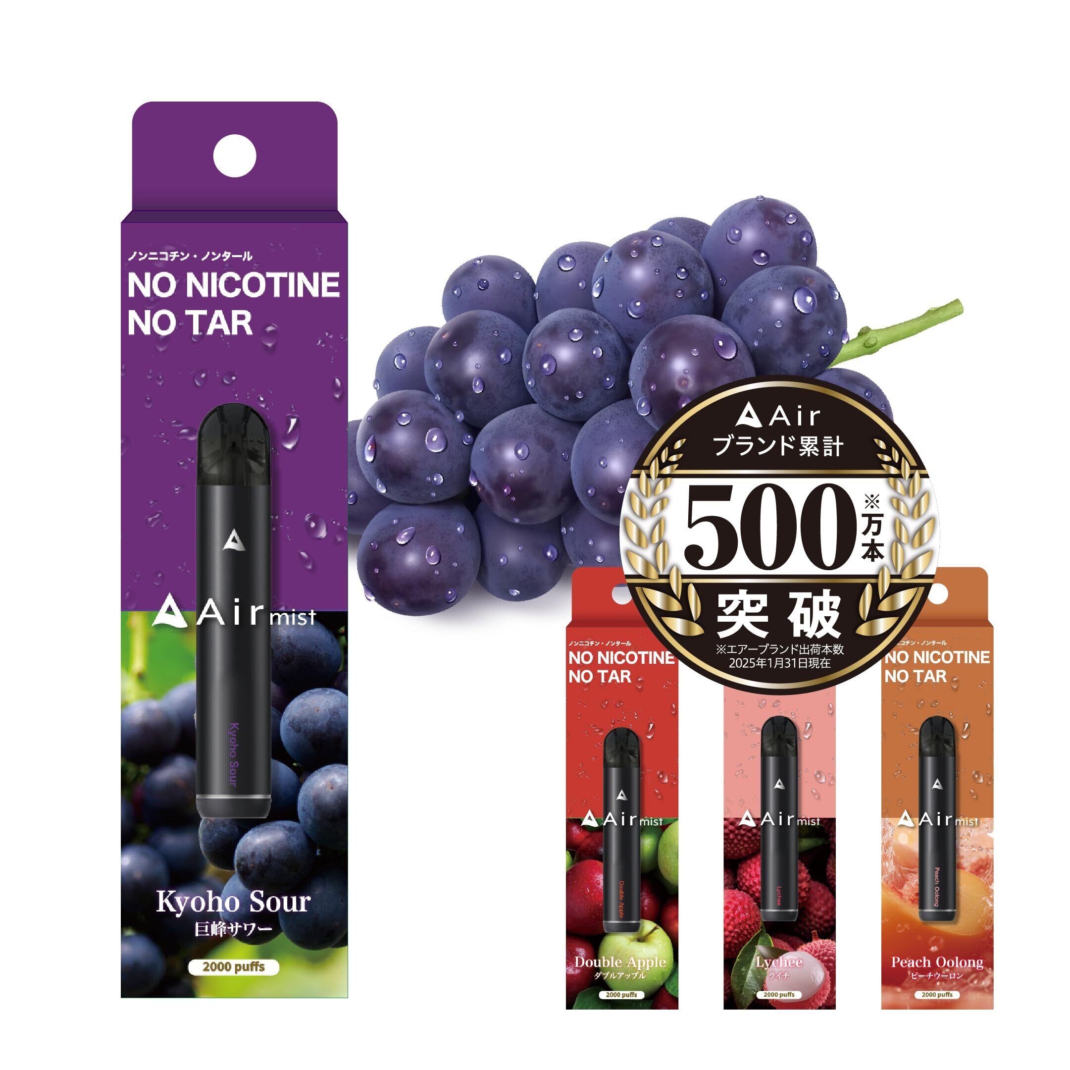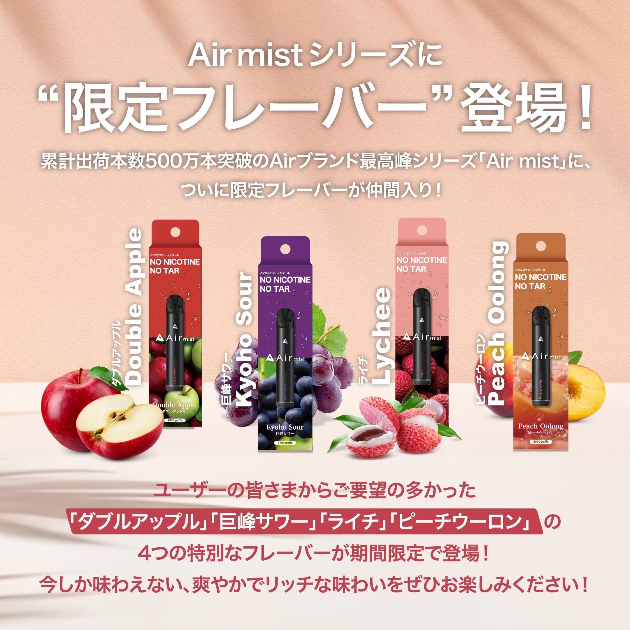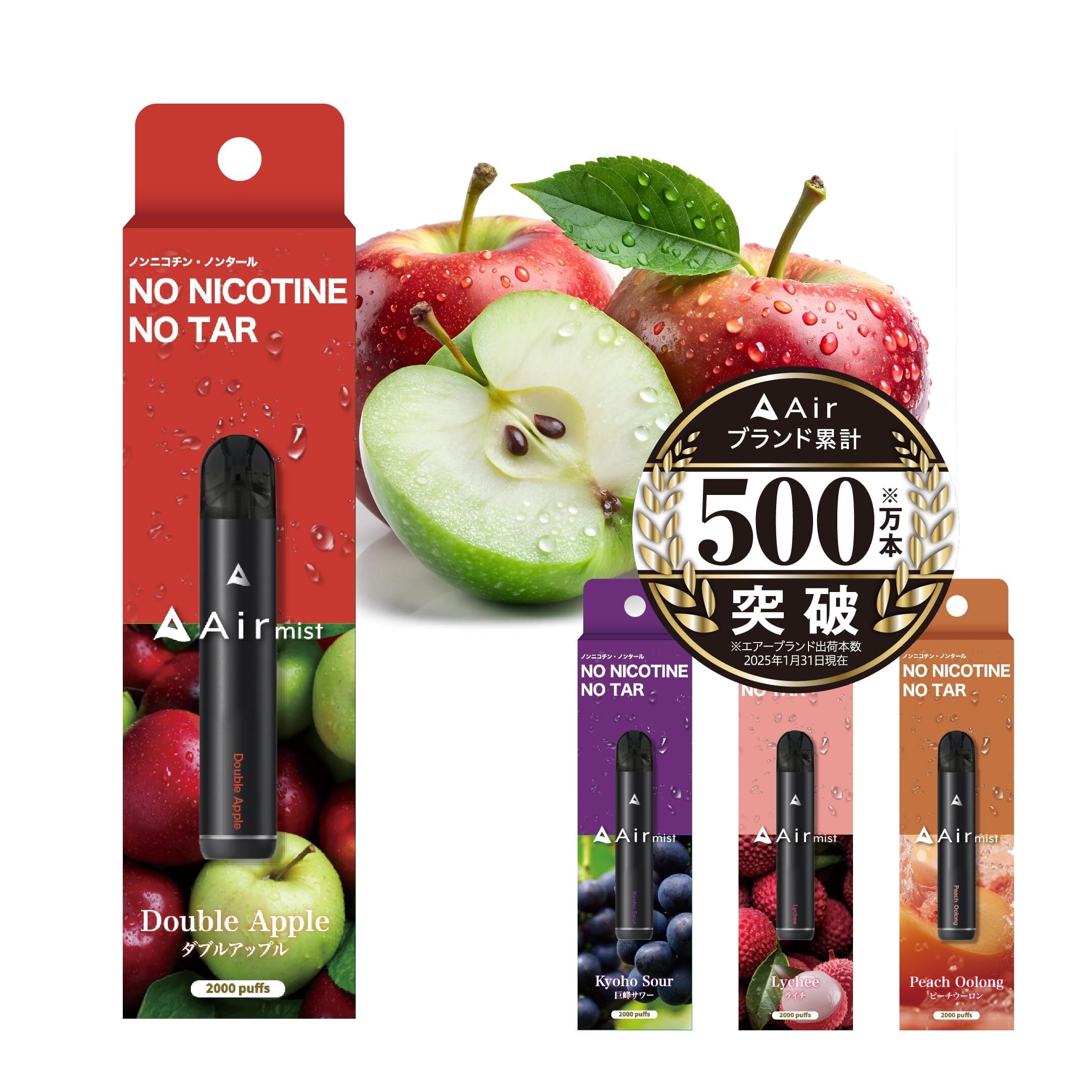 【公式】 全6フレーバー Air mist 約2,000パフ エアーミスト べイプ 持ち運び シーシャ ポケット vape 使い捨て 電子タバコ (1本, ダブルアップル)