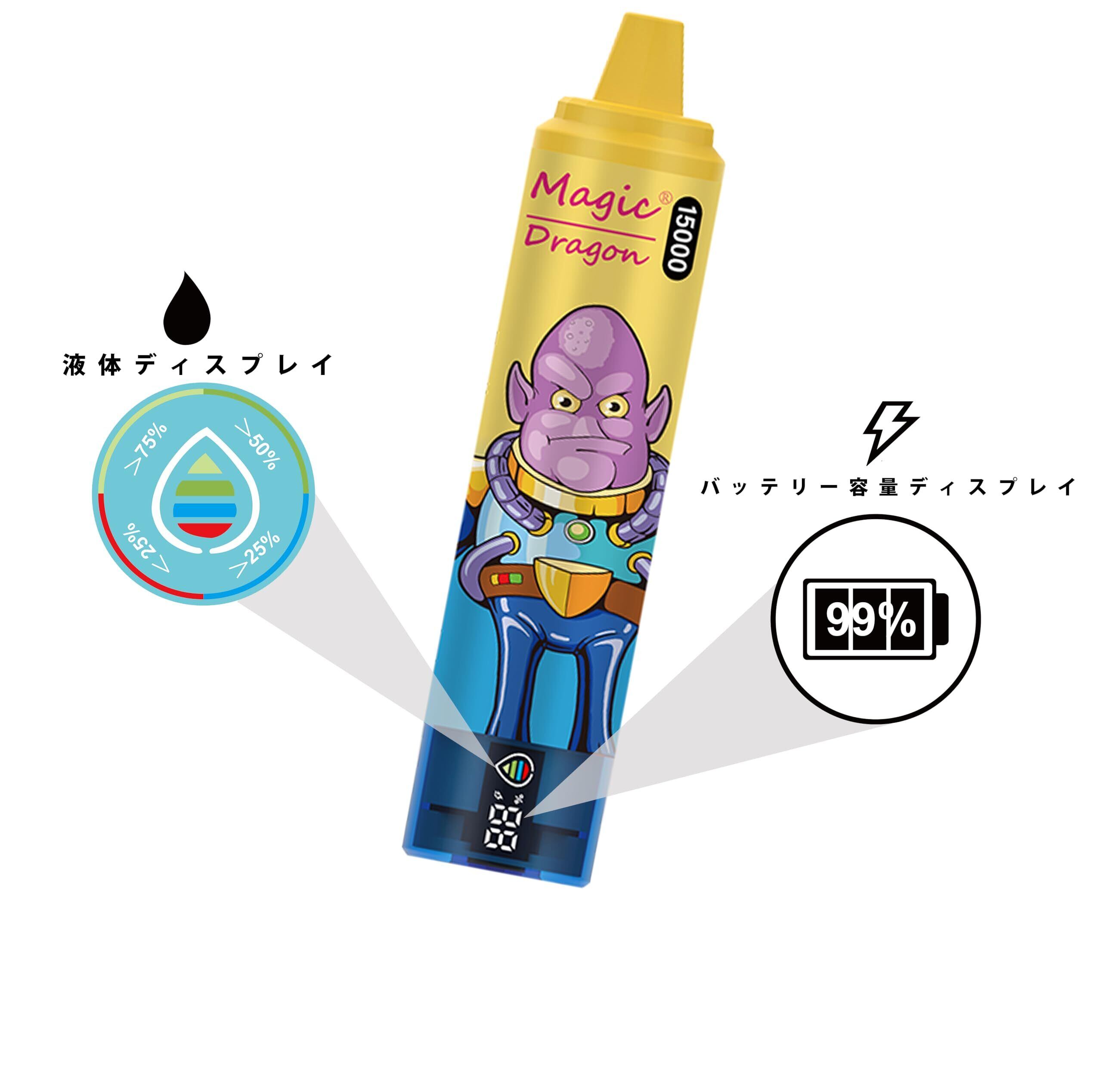拡張されたパフ容量:使い捨て電子タバコの容量は最大15,000パフで、頻繁に交換する必要がありません。デバイスには850mAhのバッテリーも付属しており、長時間のベイピングセッションに十分な電力を供給するため、お気に入りのフレーバーをより長く楽しむことができます。