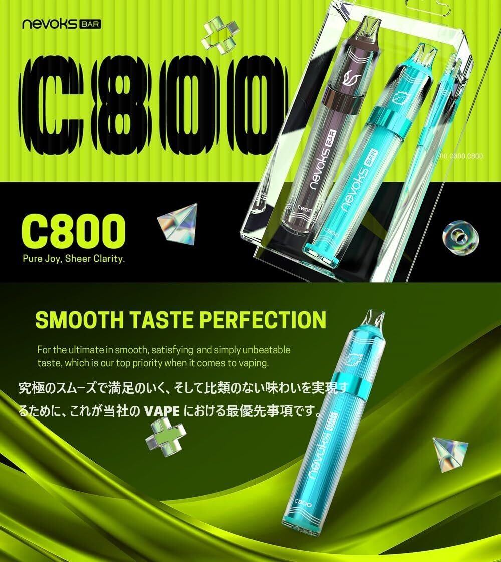 オフィスエッジ Nevoks Bar C800 持ち運びシーシャ ニコチン0 タール0 使い捨て ネボックス ネヴォックス バー 電子タバコ ベイプ スターターキット vape ネボックスバー キック感 [T-14] (アイスコーラ)