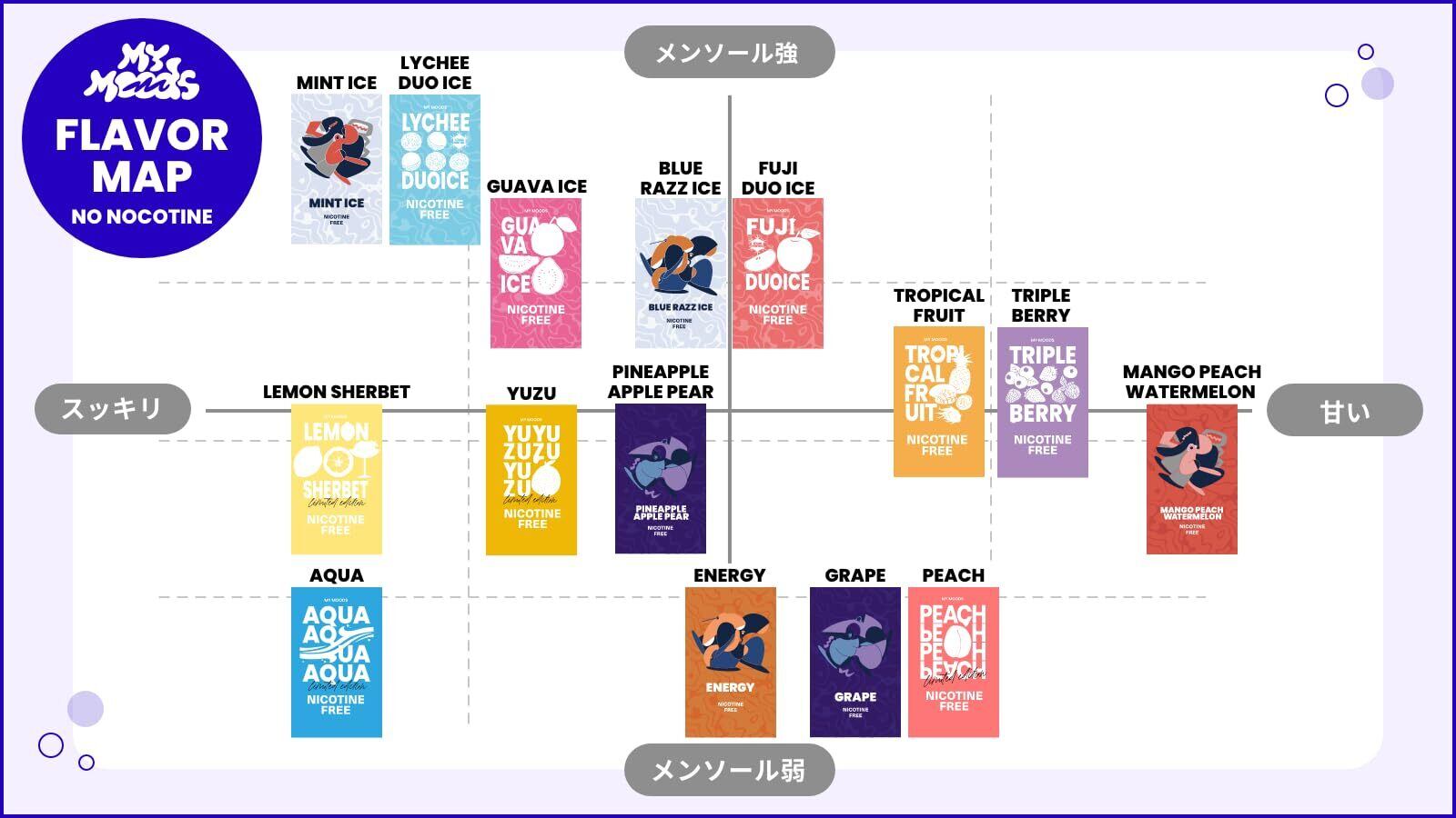 【味の濃さと本格的なフレーバー】芳醇な旨味のフルーツ系、爽やかに風味が突き抜けるミント系、活力あふれるエナジー系など。あらゆるシーンに寄り添う、充実の8フレーバー。