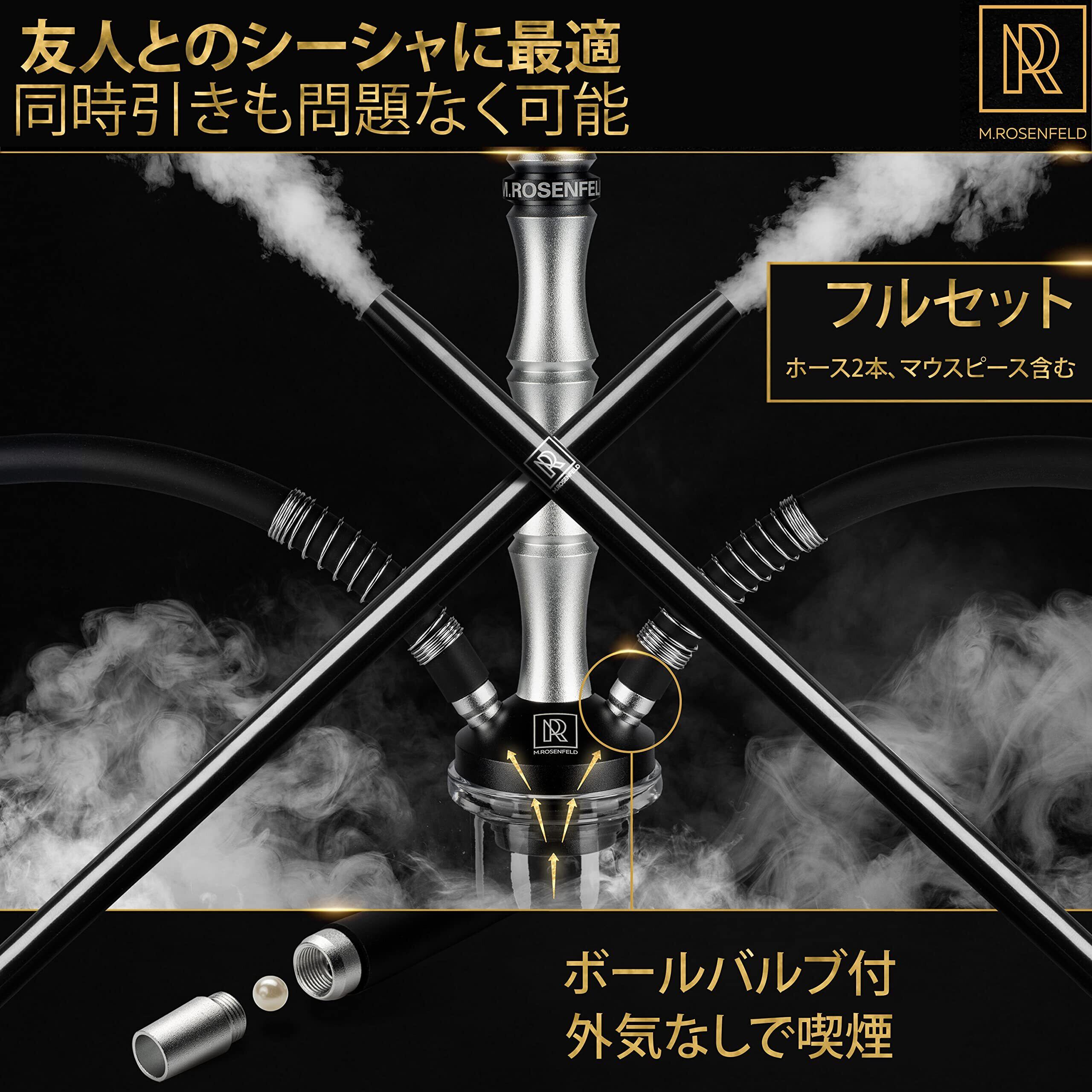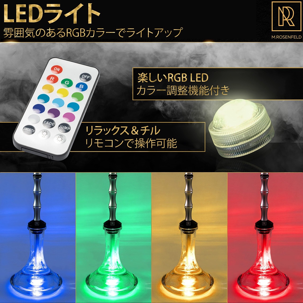 シーシャ 75cm しーしゃセットホース2本 シーシャ用アクセサリの最高アクセサリー【LEDライト】【2コネクション】【ステンレス製シーシャ煙突】+エングレービング - 喫煙具 水タバコ M.ROSENFIELD | kki