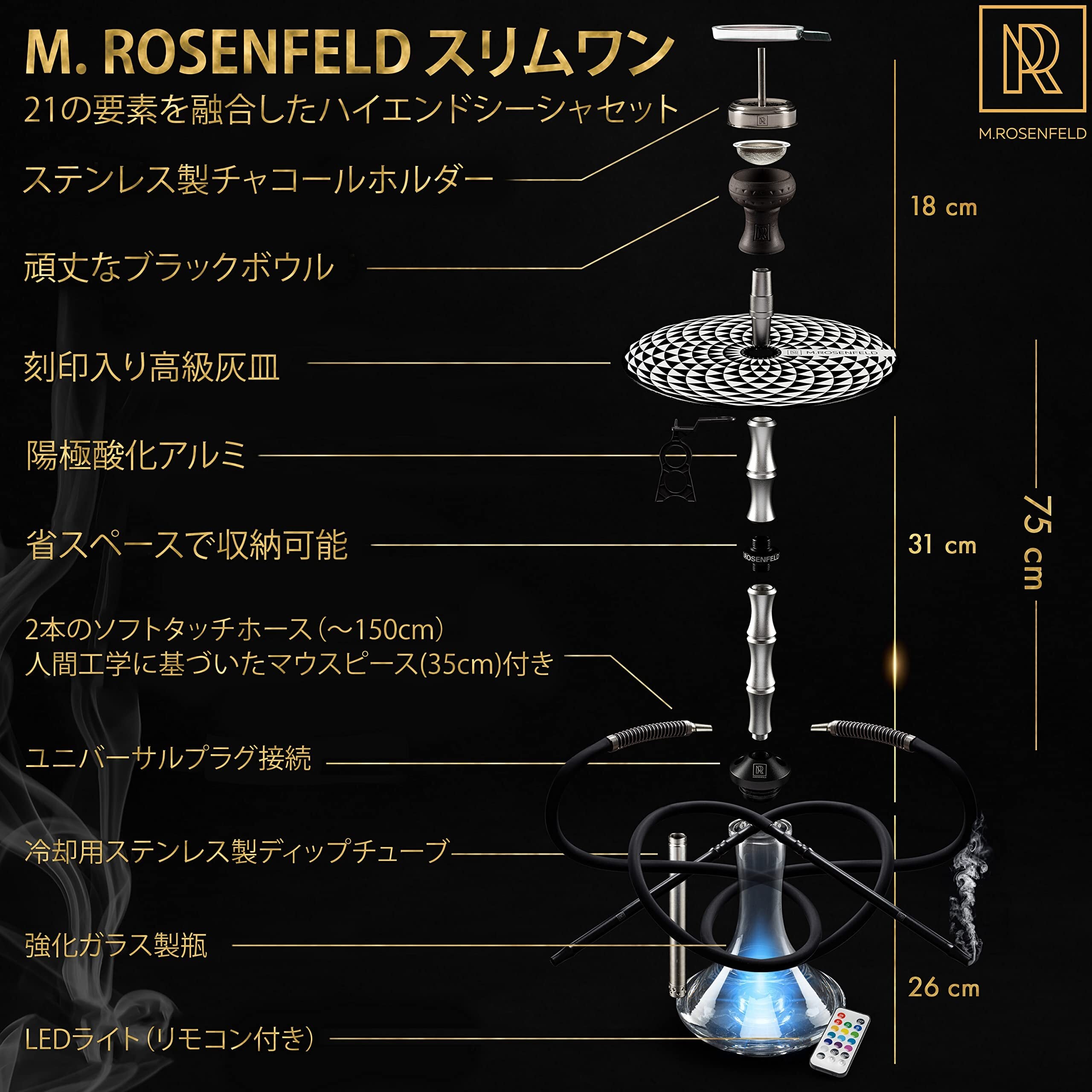 M.ROSENFELDの精密な品質管理により、長期間の使用が可能です。 妥協のない品質のフカ。SLIM ONE ホース2本付きフッカ- 100%満足または返金! 100日分!