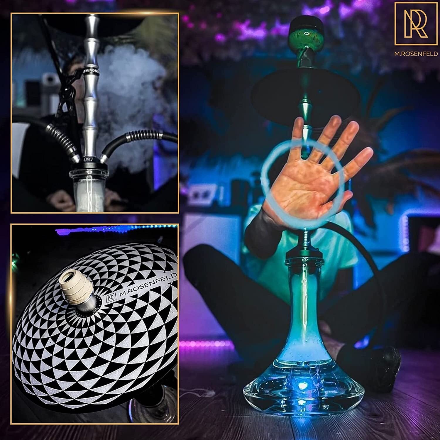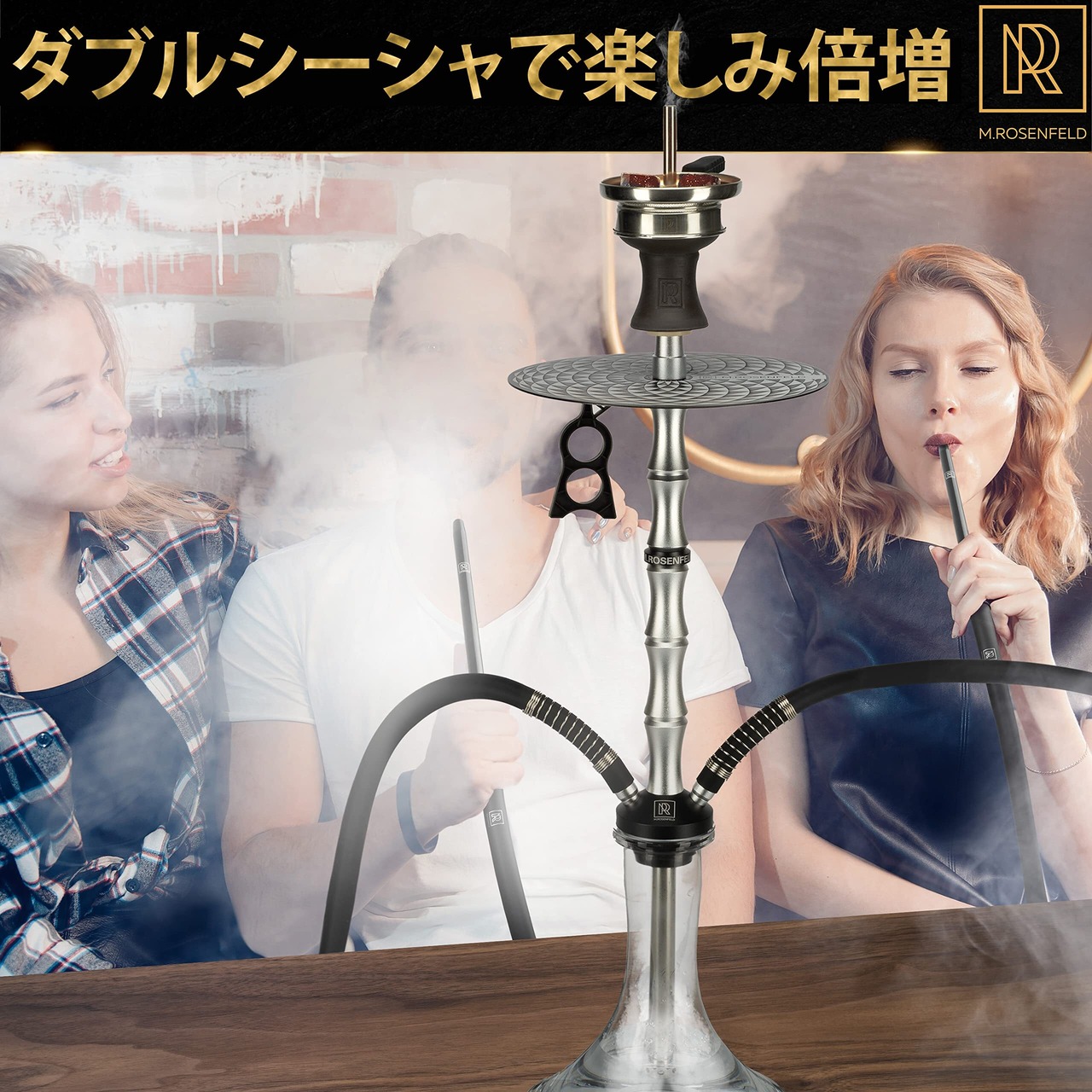 シーシャ 75cm しーしゃセットホース2本 シーシャ用アクセサリの最高アクセサリー【LEDライト】【2コネクション】【ステンレス製シーシャ煙突】+エングレービング - 喫煙具 水タバコ M.ROSENFIELD