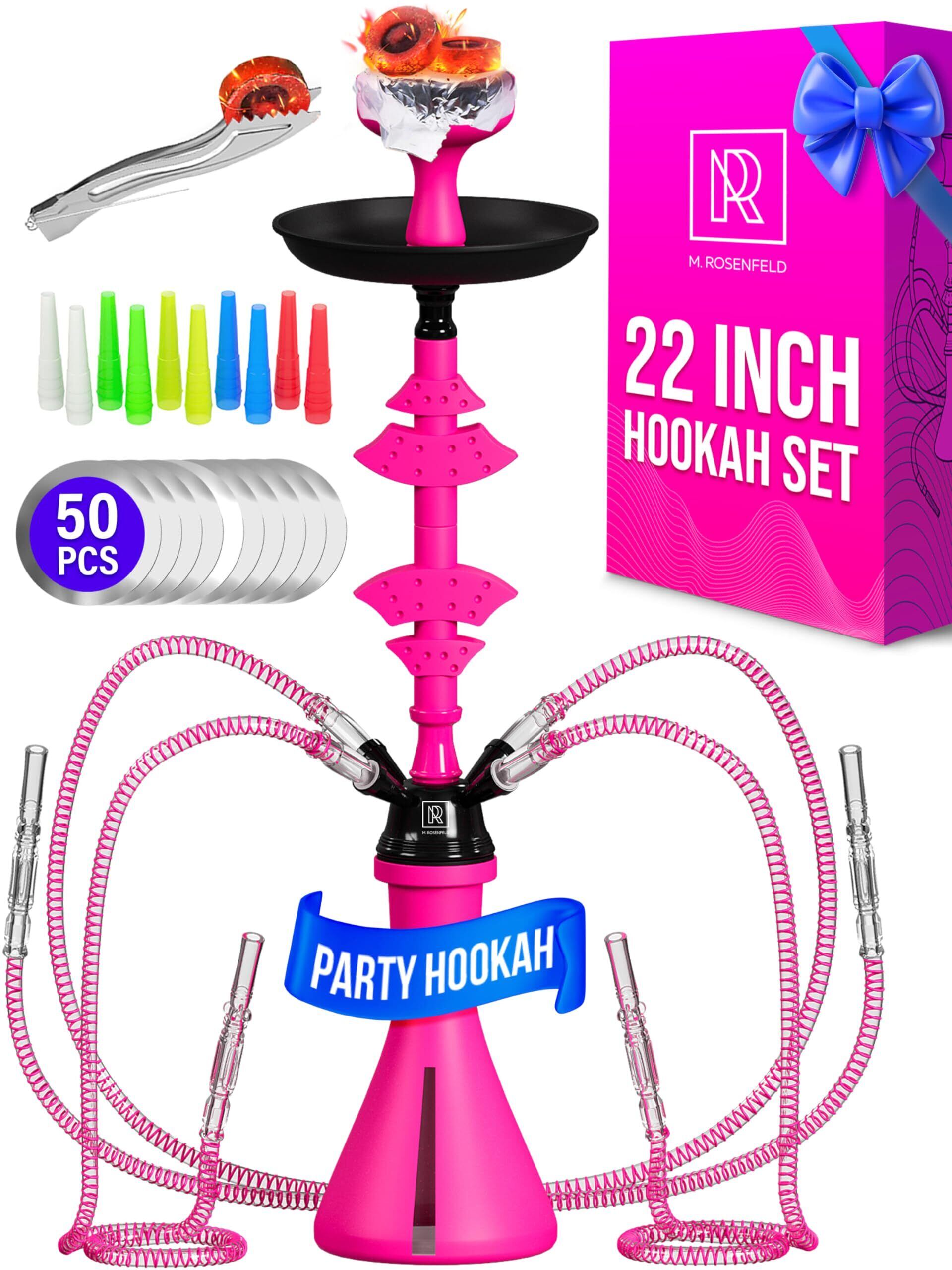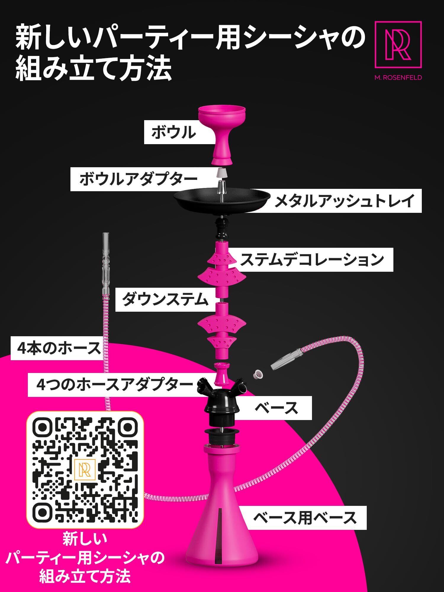 シーシャ 本体 55cm 4ホース シーシャ セット 一式 アウトドア 大型シリコンボウル・ホイル50枚・マウスピース10本・トング付 シーシャ 初心者セット 軽量アルミ軸のシーシャ 本体セット hookah set 倒れにくい安定ベース 初心者から上級者まで満足 メンテ簡単 プレゼント最適 M.ROSENFELD ピンクブラック | kki