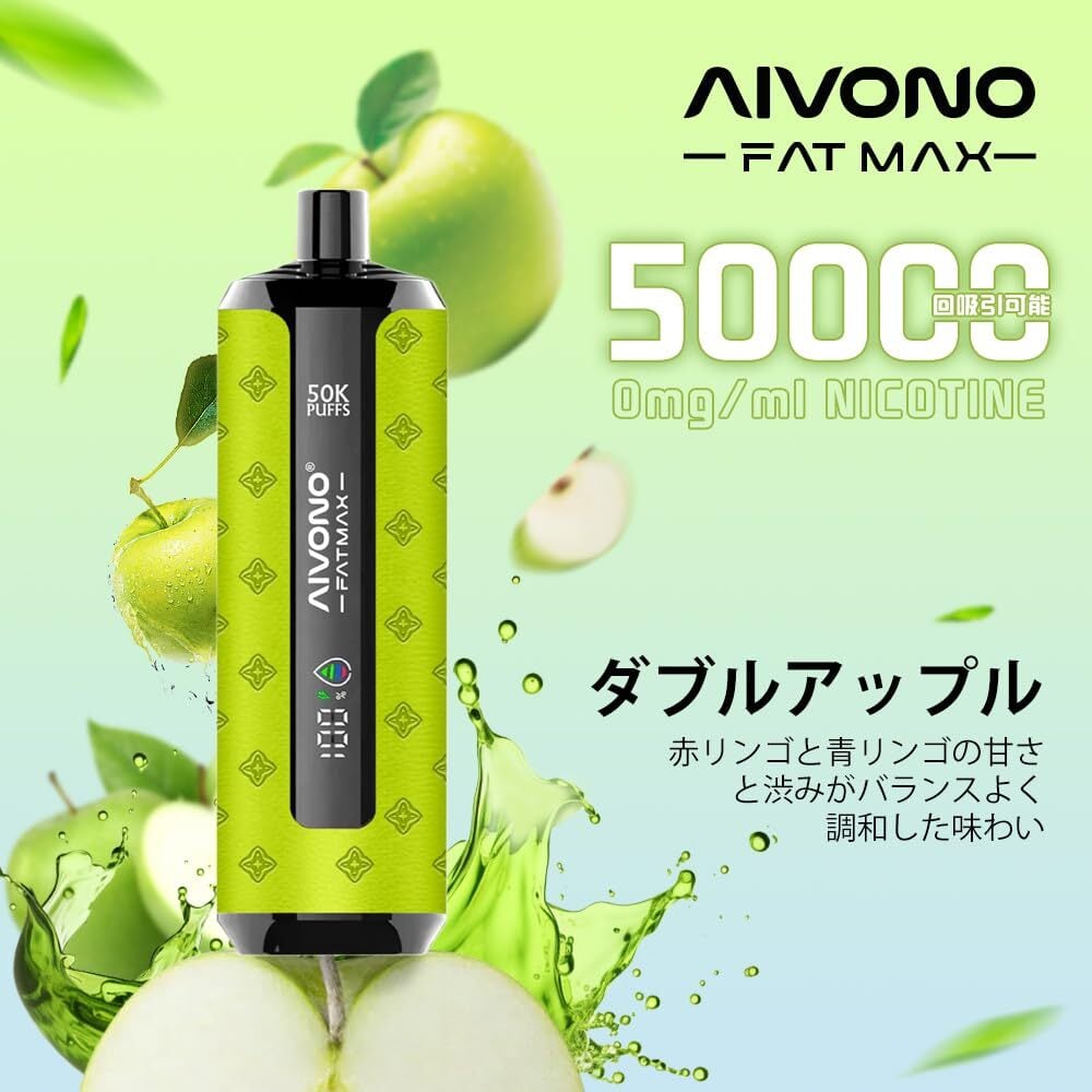 50000回吸引 使い捨て電子タバコ AIVONO Aim Flash 50 kパフ 使い捨てVAPEキット調整可能 メッシュコイル E-リキッドとバッテリーの残量表示 大容量 Type-C 爆煙 持ち運び シーシャ ニコチンなしタバコなし (ダブルアップル)