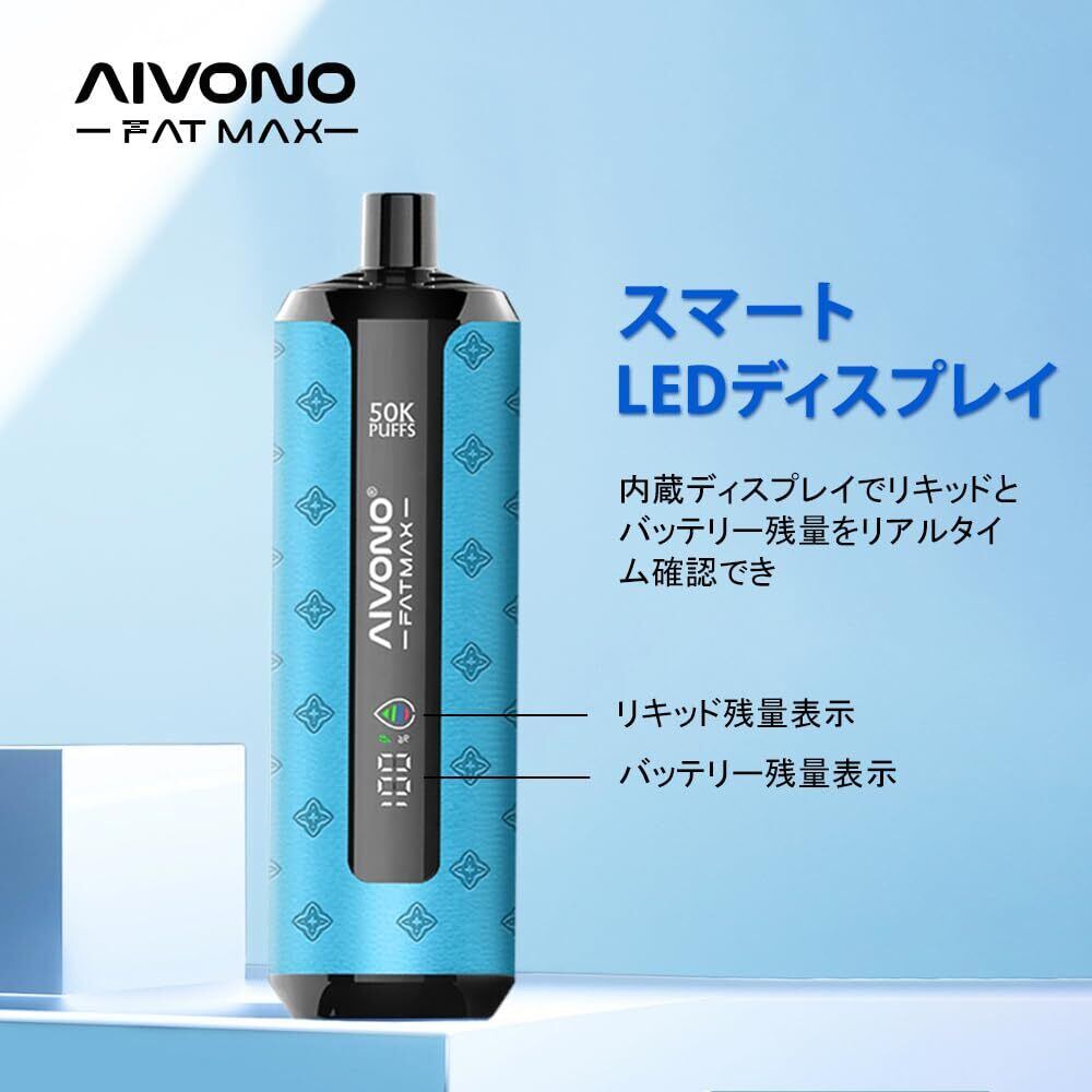 AIVONO 50000回吸引可能 使い捨て 電子タバコは、800mAh大容量充電式バッテリーとType-C急速充電ポートを搭載し、約30分の充電で長時間使用可能。大容量プリロードリキッドにより最大50,000パフを実現し、10種類以上の豊富なフレーバーから選択可能。LEDスクリーンでバッテリー残量とリキッド量を常時確認でき、底面のエアフロー調整ノブで吸引感を自由にカスタマイズ可能(MTL/DTL対応)