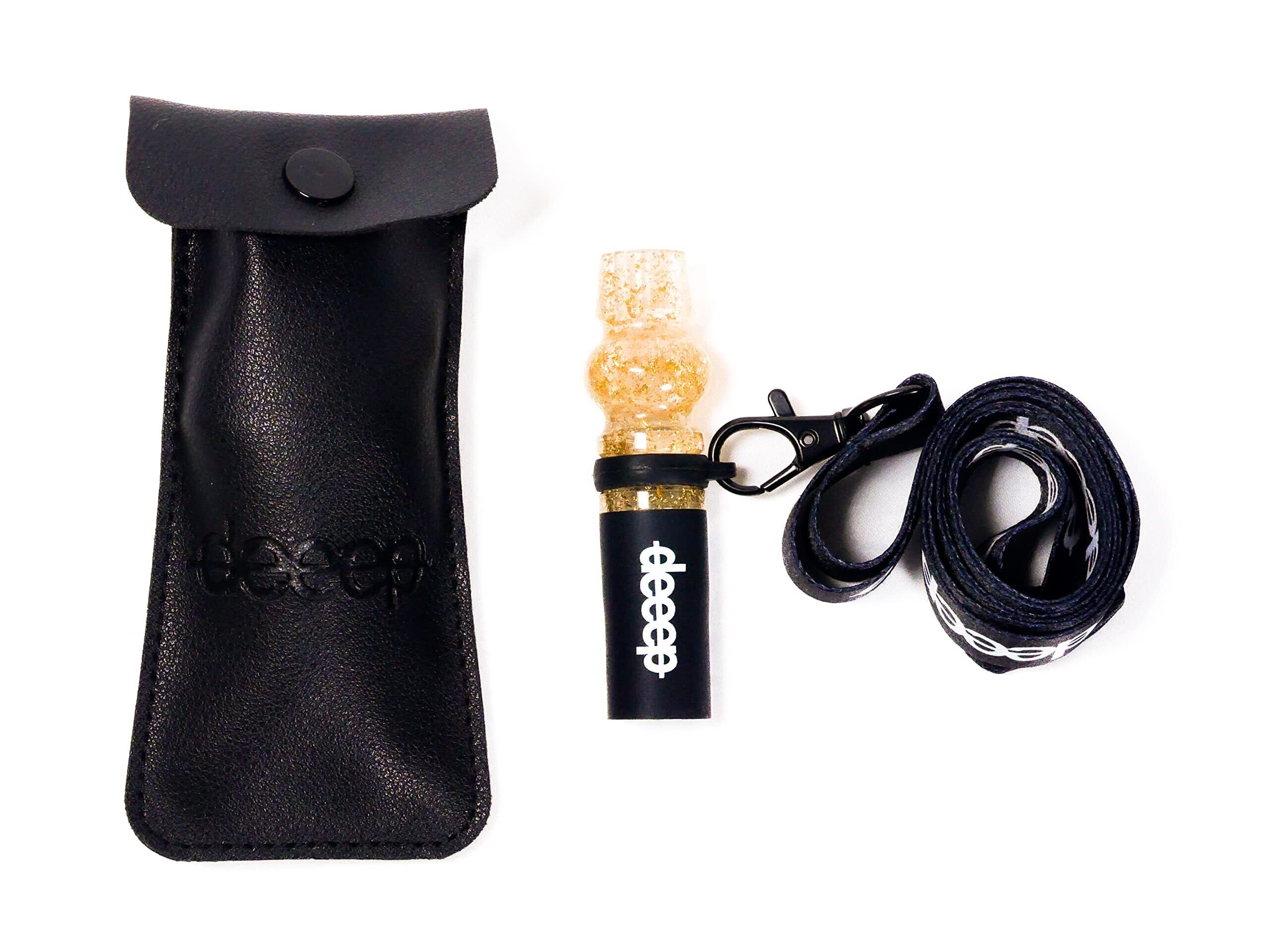 【deeep】シーシャ用 マウスピース 樹脂製 シリコン PUレザーケース ストラップ付 (ラメゴールド)