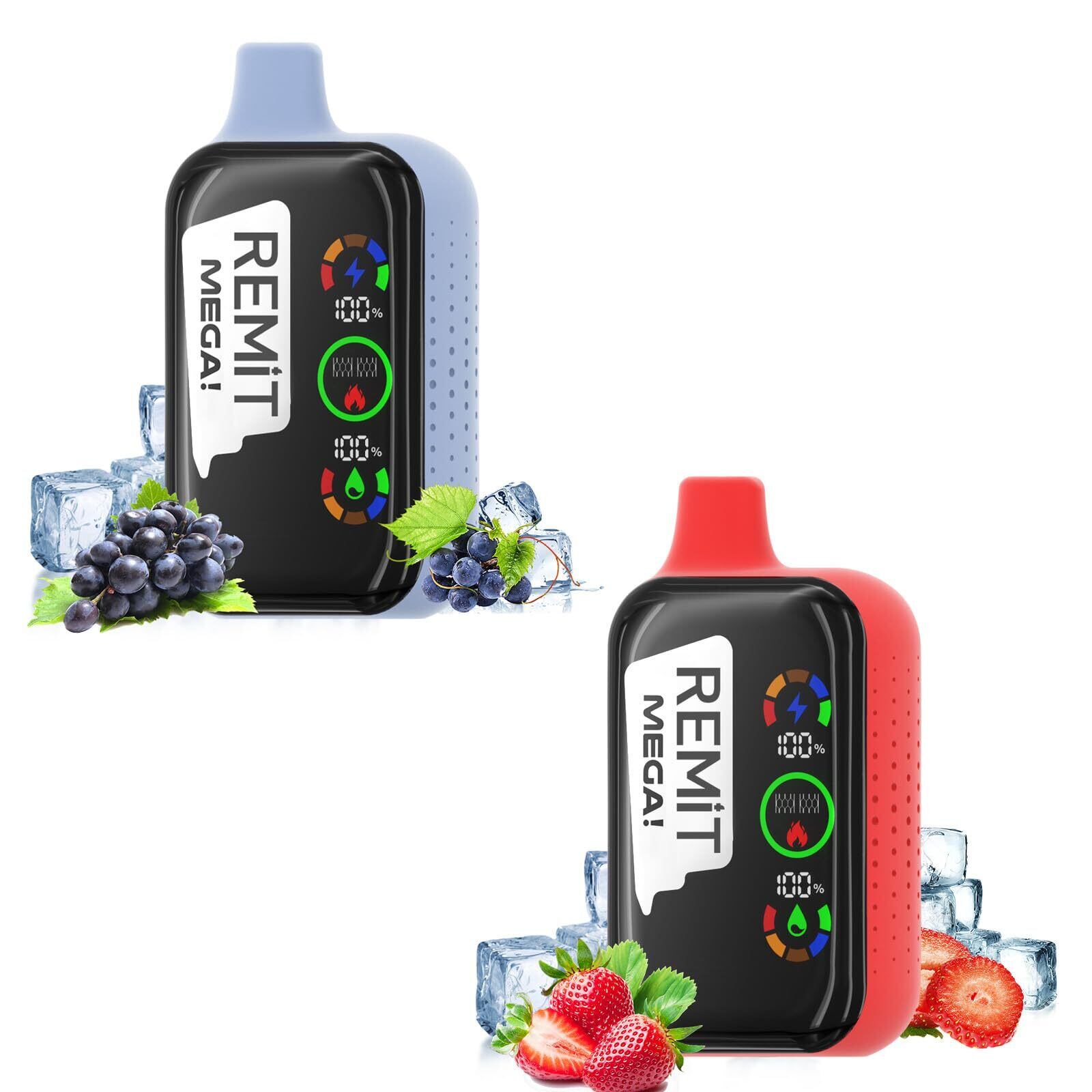 「2個入り」電子タバコ 使い捨て REMIT MEGA 18000回吸引可能 大容量 持ち運び ベイプ vape シーシャ 本体 650mAhバッテリー ベイプエンジン Type-C充電 人気 水蒸気タバコ 爆煙 禁煙パイポ ペン型 セット ニコチンなし タール無し (ストロベリーアイス(フレーバー1), グレープハニーデュー(フレーバー2))