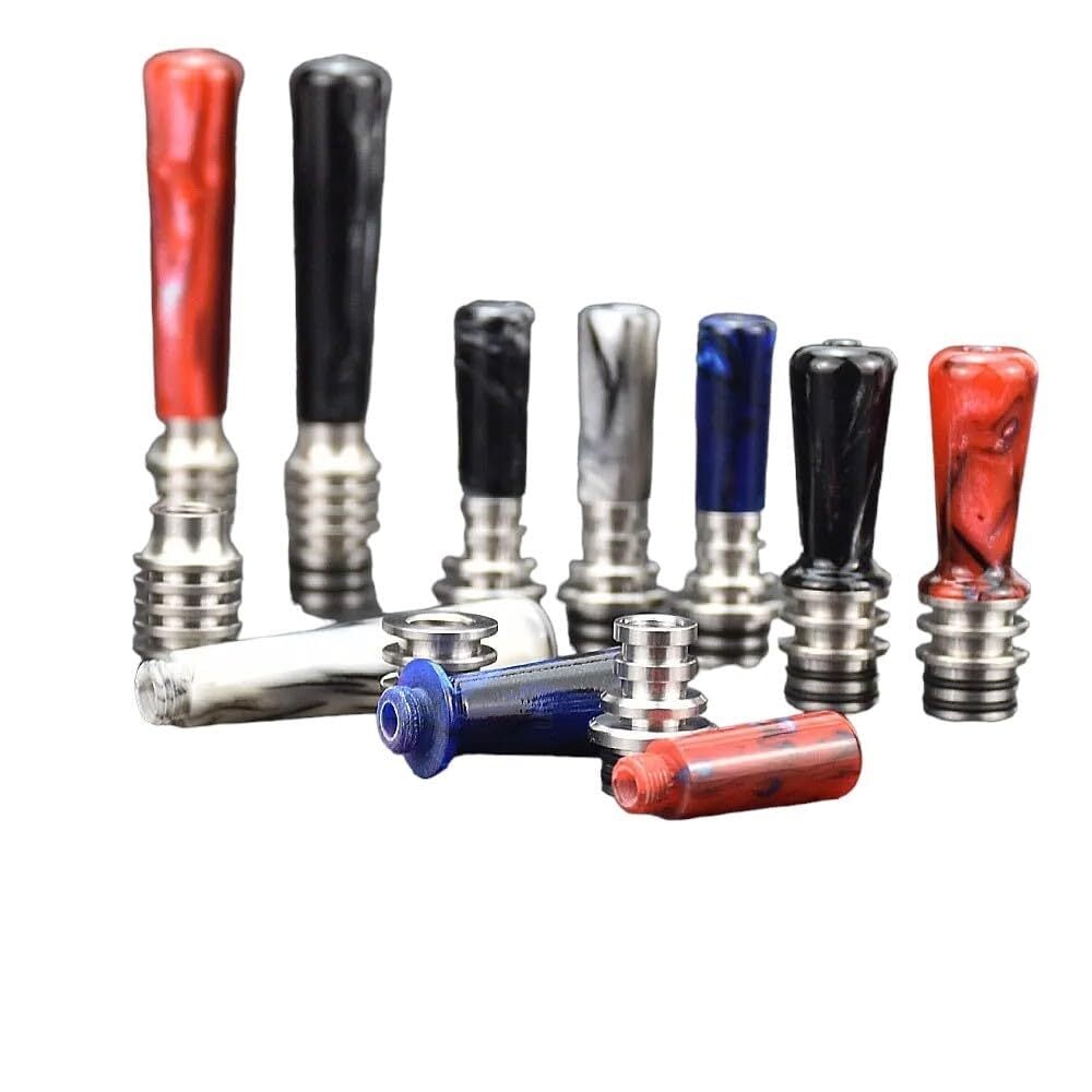 ロングデザインのドリップチップ 。 細く長いドリップチップは、リキッド本来の味を引き立てます。カラー: ブラック・ブルー・レッド・ホワイト。