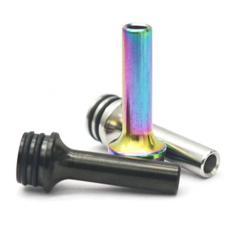510規格に適合するドリップチップです。 金属部分にはステンレスを使用し錆びにくいです。 スピッドバック防止(抑制)機能:ロングホールにより、リキッドのはねかえりを防止(抑制)します。 口にくわえた際の最細部:約5mm