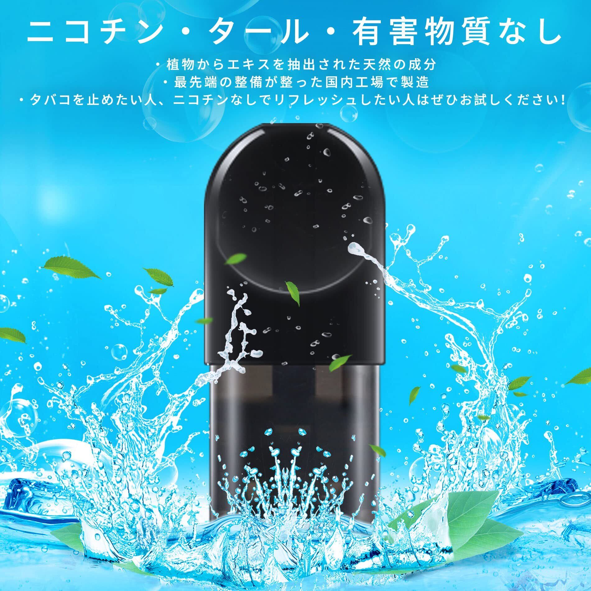 ニコチン・タールなど有害物質は一切含まれておりません。タバコ臭さ・副流煙もゼロ、他人に迷惑かけずに、いつでもどこでもリフレッシュ!