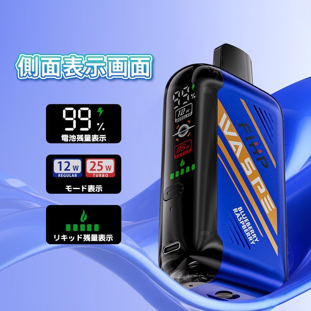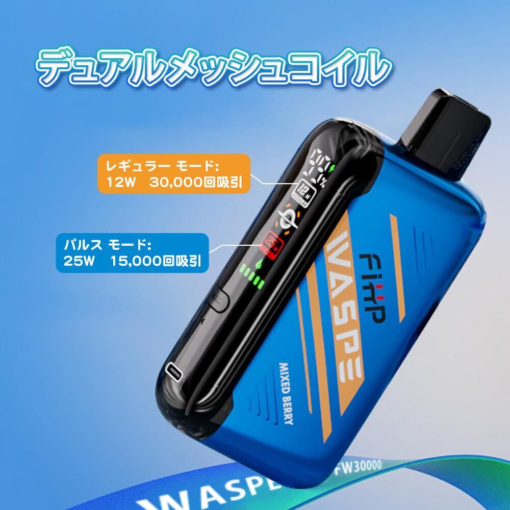 電子タバコ 使い捨て WASPE 30000回吸引 vape シーシャ 持ち運び ベイプエンジン 本体 水蒸気タバコ 爆煙 禁煙グッズ 禁煙パイポ Type-C 850mAh 充電式 ニコチンなし タール無し (30000回, ストロベリーマンゴー)