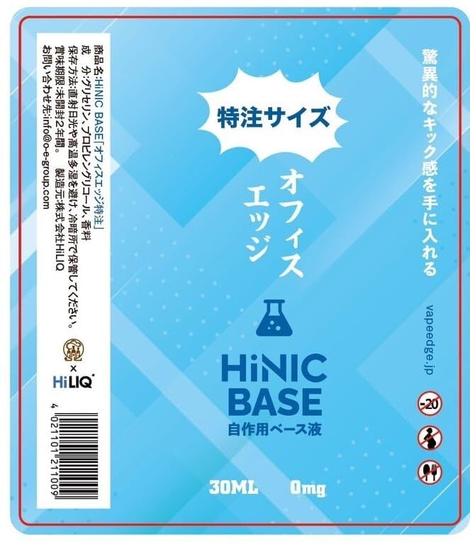 ハイニク HILIQ HiNIC ベースリキッド オフィスエッジ限定特注サイズ 30mL特大サイズ ベープ用ベース液 vape用 キック感・電子シーシャ・電子タバコ用 ハイニックベースリキッド 禁煙補助 [T-18]
