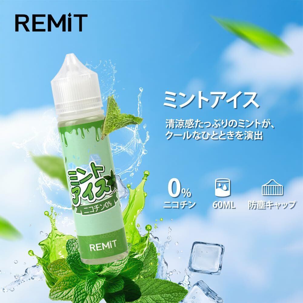 電子タバコ用 VAPE リキッド Remit 大容量 E-リキッド 60ml 持ち運び べいプ シーシャ りきっどや PG50:VG50 人気フレーバー ニコチンなし タールなし 濃厚 調和に便利 (60ml+10ml, ミントアイス+メントール)