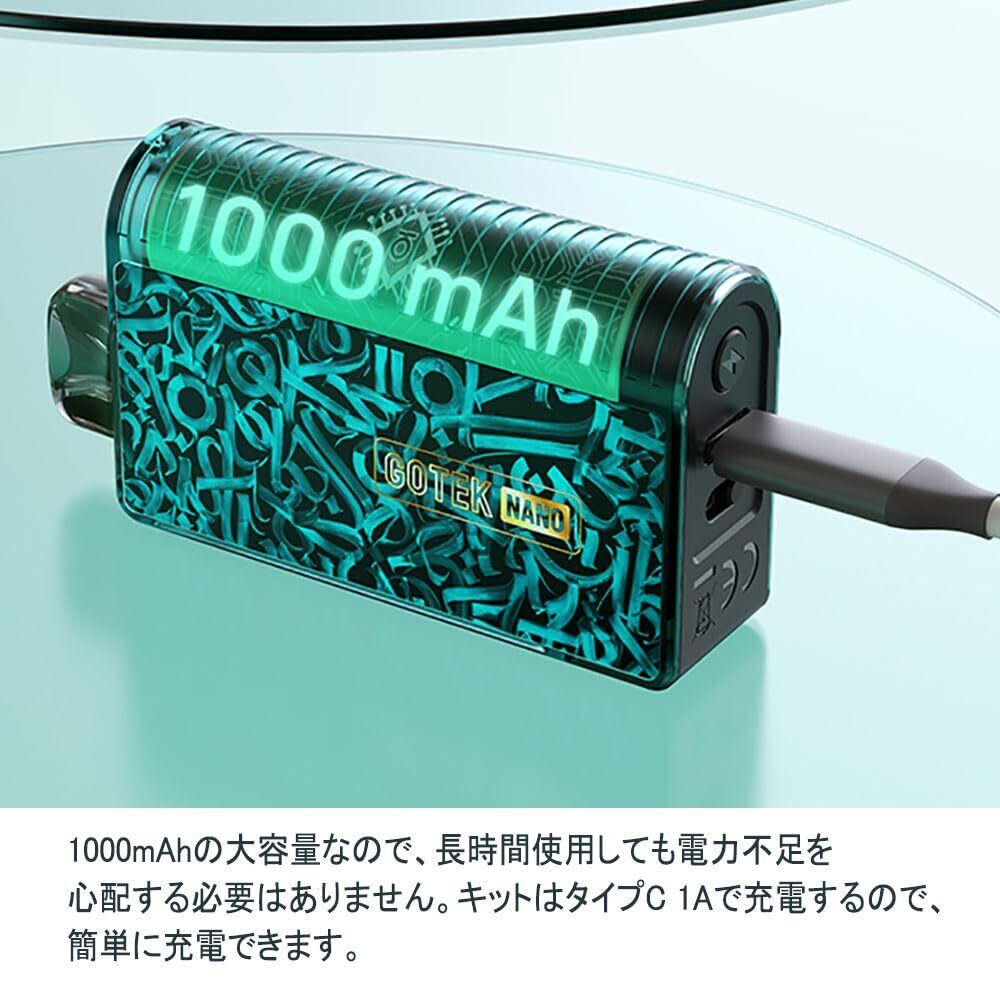 「1000mAhで充電切れの心配なし」強力な1000mAhバッテリー容量で、電子タバコの使用中に充電切れの心配がありません。Type-Cセットで迅速に充電できるため、持ち運び時も安心です。