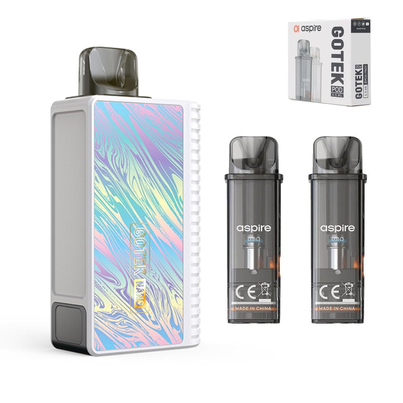 アスパイア 【GOTEK Nano 電子タバコキット+ GOTEKポッド1箱 】【正規品】持ち運びシーシャ PODスターターキット 1000mAh バッテリー 本体 カートリッジ 0.6ohm/0.8ohmコイル ベイプ アスパイア ゴテック ナノ ニコチンなしリキッドなし (ホワイト+ポッド0.8ohm)