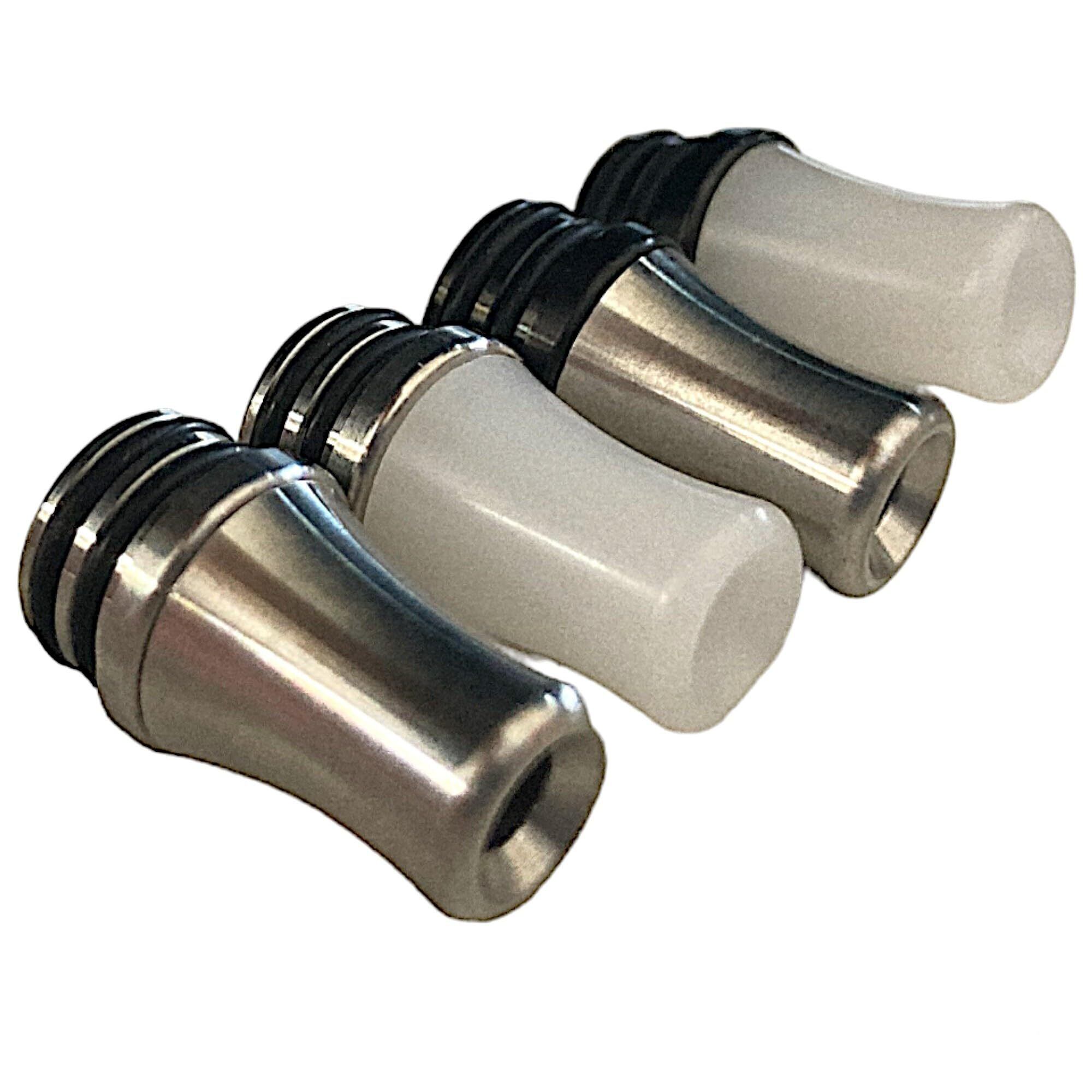 510規格に適合するステンレス素材のドリップチップです。 金属部分にはステンレスを使用し錆びにくいです。 スピッドバック防止(抑制)機能:くびれのあるロング構造でリキッドのはねかえりを防止(抑制)します。 先端がネジ構造になっているため簡単に取り替えができます。