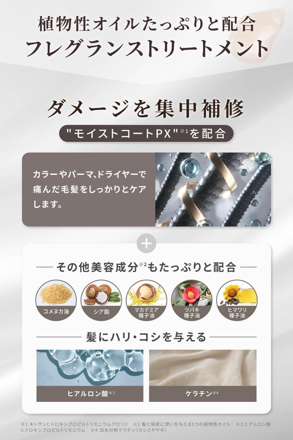 【持続する香り】 香水 のように長時間続く香りが、あなたの髪に華やかさをプラス。一日中、良い香りを楽しめます。