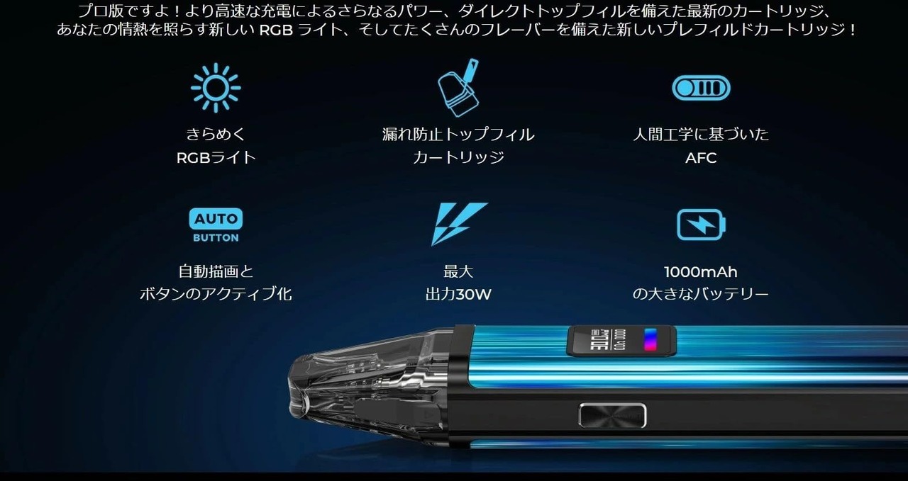 高速充電によるさらなるパワー、ダイレクトトップフィルを備えた最新のカートリッジ、輝くRGBライト、そしてNEWカートリッジ!