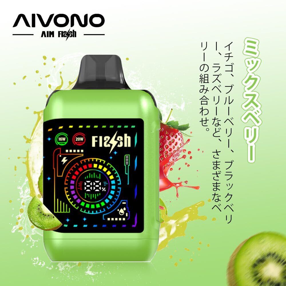【35000回吸引】使い捨て電子タバコ AIVONO Aim Flash35kパフ 使い捨てVAPEキット調整可能 メッシュコイル E-リキッドとバッテリーの残量表示 28ml 大容量 Type-C 爆煙 持ち運び シーシャ ニコチンなしタバコなし (ストロベリーキウイアイス) | kki