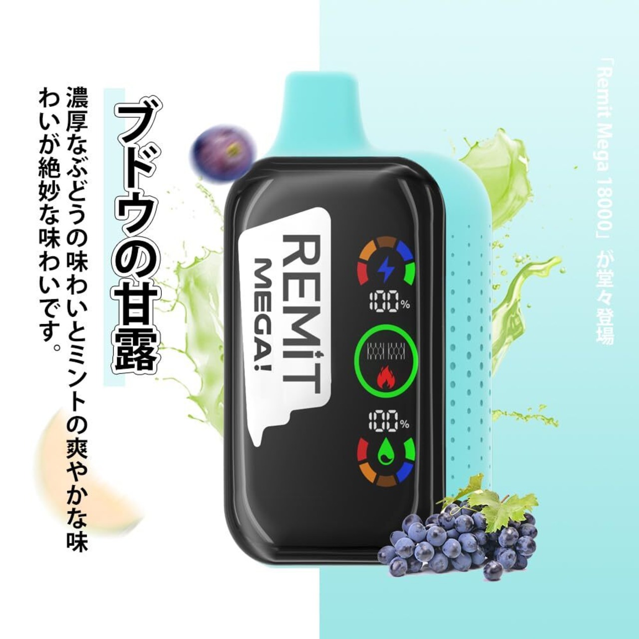 電子タバコ 使い捨て REMIT MEGA 18000回吸引可能 大容量 持ち運び vape 本体 650mAhバッテリー LEDディスプレイ ベイプエンジン Type-C充電 爆煙 禁煙パイポ ペン型 10風味セット ニコチンなし タール無 (18K 回吸引可能, グレープハニーデュー)