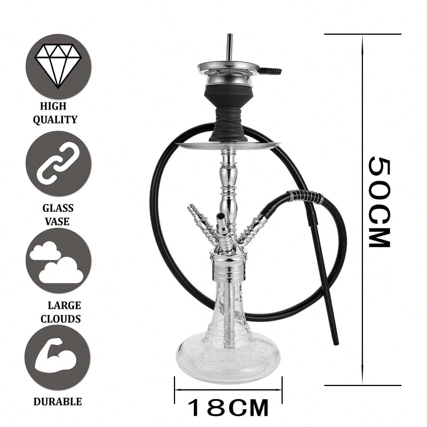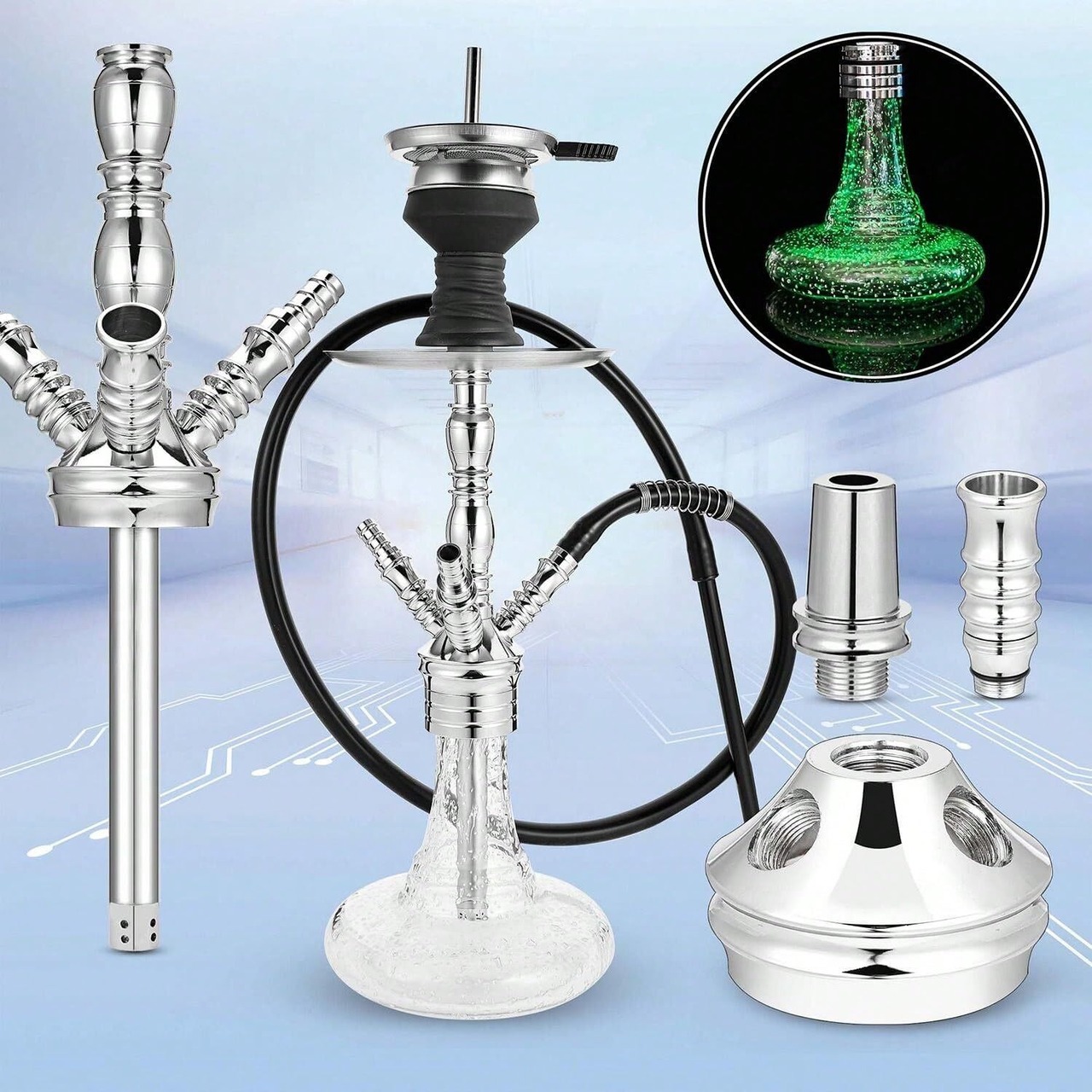 夜のひとときも、美しく輝く。 本商品は、暗闇で幻想的に光る「蛍光塗料仕上げのガラスベース」を採用した、全高約50cmの本格シーシャ(水タバコ)セットです。屋内外問わず、視覚的なインパクトと確かな吸い心地を提供します。 ステムや各接続部には高品質なアルミ合金を使用し、腐食や熱にも強い設計。分解式構造で清掃も簡単、初心者の方でも安心して扱えます。さらに、耐久性の高いシリコンホースやメッシュフィルター付きのボウル、トングまで揃ったフルセット仕様。 夜のパーティーシーンやキャンプ、自宅のベランダなど、多彩なシーンに対応。クールに光るボトルと滑らかな煙で、ラグジュアリーな時間をお楽しみください。