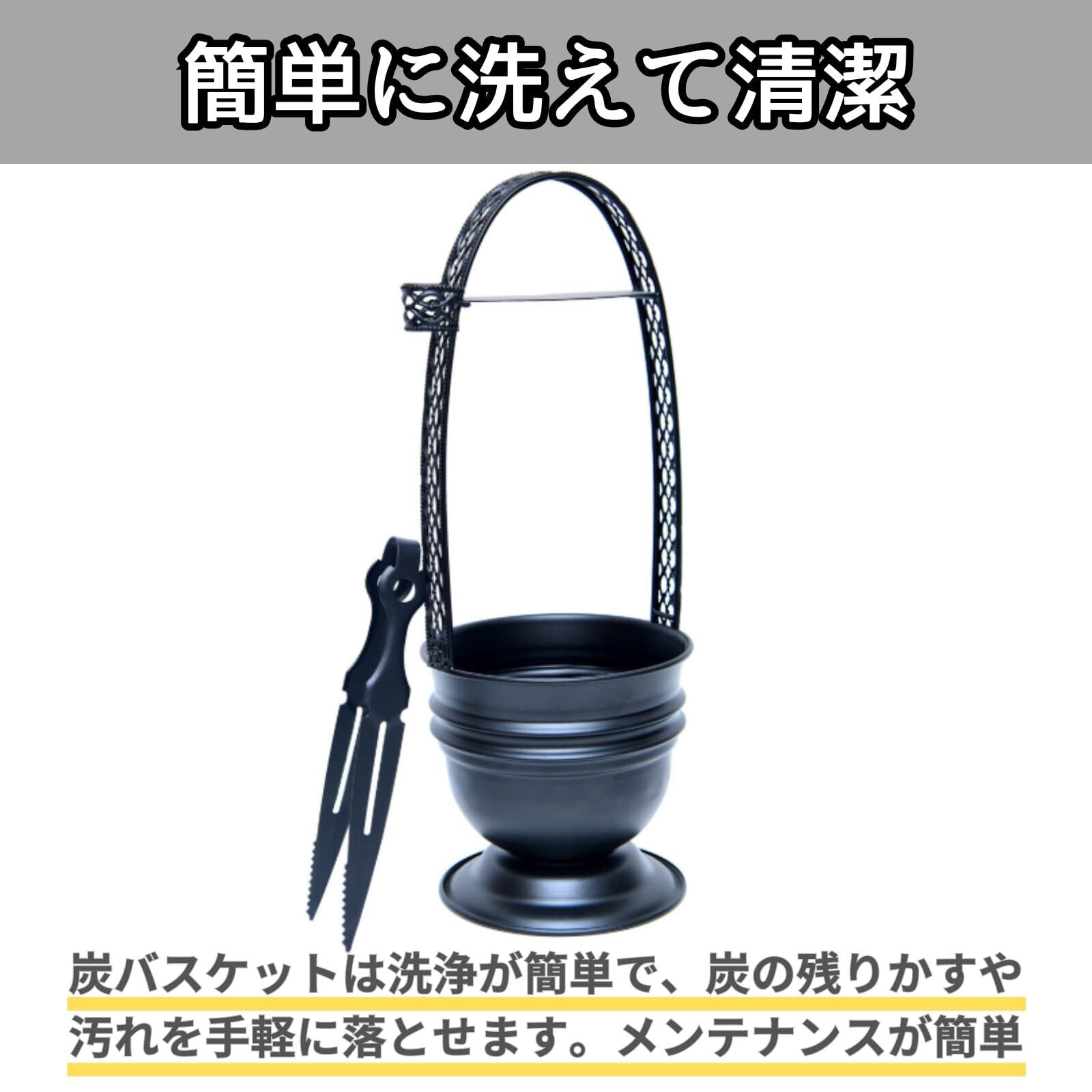 【炭の移動も簡単】持ち手付きバスケットで、熱い炭の移動や取り扱いが簡単。炭の交換や準備作業もスムーズに行え、シーシャのセットアップを素早く完了できます。