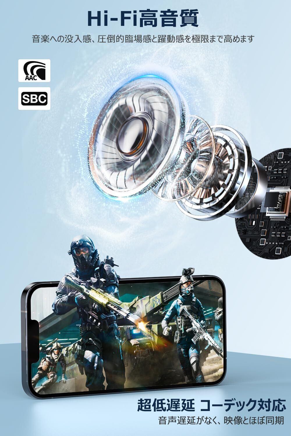 【最先端Bluetooth5.3技術・TWS瞬時接続技術】T08はBluetooth5.3チップを搭載しており、高速通信、ノイズ 低減を実現し、省エネ化及び音切れ・音ズレの防止力を大幅に改善されました。YouTube・Netflixなどの動画アプリだけではなく、荒野行動、第五人格などゲームアプリでも低遅延でスムーズに使えます。また、革新的なTWS瞬時接続技術を採用しており、2回目以降の接続は自動的にデバイスとの瞬時接続が実現されます。複雑な操作は必要ありませんので、初心者の方でも簡単に操作できるbluetoothイヤホンワイヤレスイヤホンとなっています。
