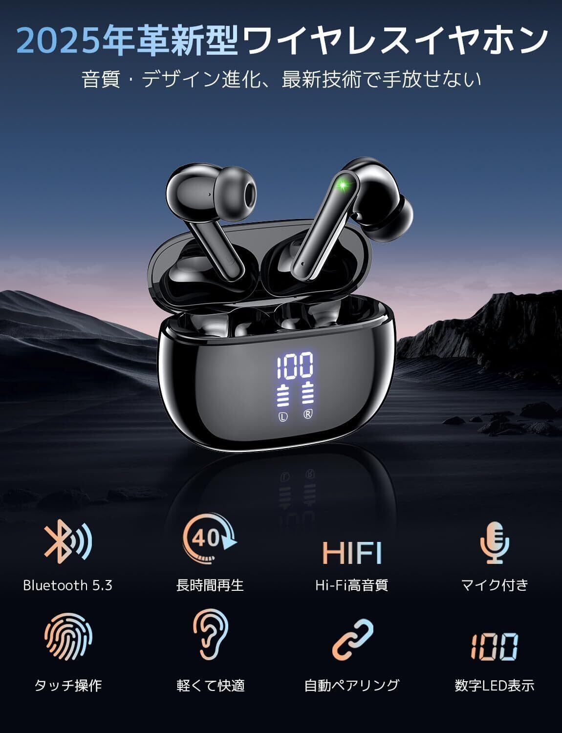 【2025年新発売モデル】年明け超人気の進化型ワイヤレスイヤホン再登場!業界トップクラスBluetooth 5.3チップ&プロ級チューニングを継承しつつ、通話性能と充電効率も劇的改善!ケーブル解放のオシャレ設計はそのままに、進化を手に。【ENCノイズキャンセリング性能】最大35dBノイズ低減の高性能ぶるーとゅーす イヤホンは、街中騒音・電車雑音をカット。低遅延通話とゲーム時の方向知覚に優れ、リモート会議でも明晰な音声を実現。イヤホン bluetooth ならではのノイズリダクション技術で、あらゆる環境で音楽世界に没入可能!【大口径ドライバーで実現するHIFI音質】大口径振動ユニット搭載により、音楽の生々しさ・艶を細部まで再現し、高精細サウンドを維持。【音の一瞬を、刻みこむ】深みある重低音は波紋のように広がり、透徹高音は花火の昇華を再現!映画鑑賞時の空間表現力やライブの臨場感を感動的に体感できて、動的な音の世界へ誘います。