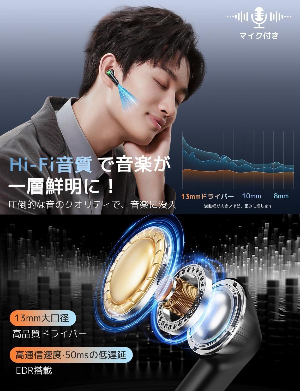 【最新進化版Bluetooth5.3チップでストレスフリー!】安定接続を実現するBluetooth 5.3高性能チップを採用したワイヤレスイヤホン。従来バージョンより省電力性・接続安定性が向上し、音切れしにくい設計。混雑した環境でも快適な高音質音楽体験が可能です。バッテリー消費を抑えるため、通勤・通学・長距離移動にも最適。外出時はもちろん、在宅勤務やオンライン会議中も安定接続を維持し、途切れないストレスフリーな使用感を実現!業界トップクラスのBluetooth 5.3&AAC/SBCコーデック対応で、iPhoneからAndroidまであらゆるデバイスで、没入感のあるサウンドをお楽しみいただけます。【面倒ゼロの自動ペアリング機能】ケースからイヤホンを取り出すだけで即接続!イヤホン bluetooth の煩わしい設定作業とはお別れです。初期設定1回限りで、次回以降は電源ONするだけで0.68秒即認識!即接続・即通話も可能。