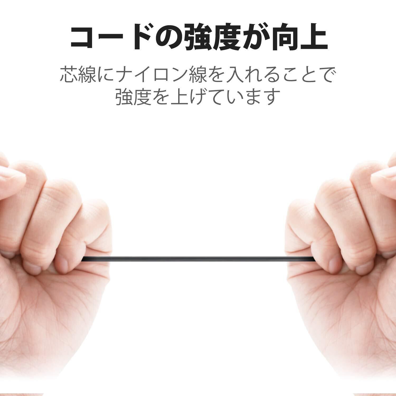 絡みにくく耐性に優れたエラストマー素材のコードを採用しています。また、芯線にナイロン線を入れることで強度を上げています。