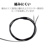■絡みにくく耐性に優れたエラストマー素材のコードを採用しています。また、芯線にナイロン線を入れることで強度を上げています。