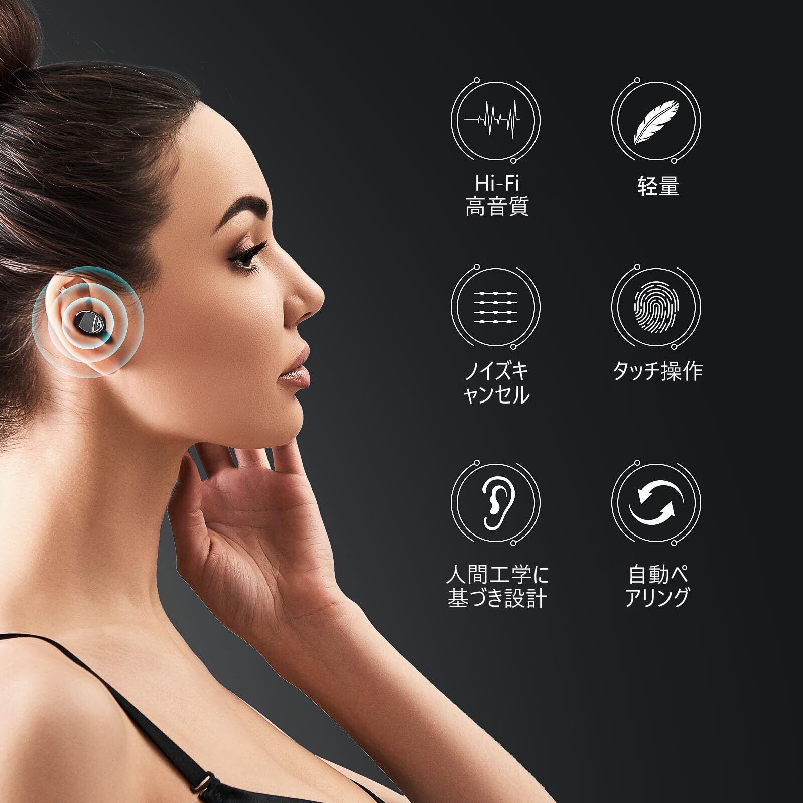 【より良き音質をお届け&通話向けマイク】イヤホンは「音本来の豊かさ」を追求するために、音の粒立ちが良く、歯切れのいい音楽が再生されます。迫力ある低音から自然な中音、伸びやかな高音まで幅広く楽しめ、妥協のない高音質サウンドを実現しており、原音を忠実に再現できます。それに合わせて音を再生することで臨場感を演出し、音楽に没入できます。完全ワイヤレスイヤホンは小型の高性能マイクとビームフォーミング技術と優れたノイズキャンセリング性能により、周囲の雑音を拾いにくい、自分の発話だけに焦点を当てて通話相手へ明瞭に伝えられるため、通話品質に優れています。オンライン授業、会議など会話に最適!効率的に会話を進められます