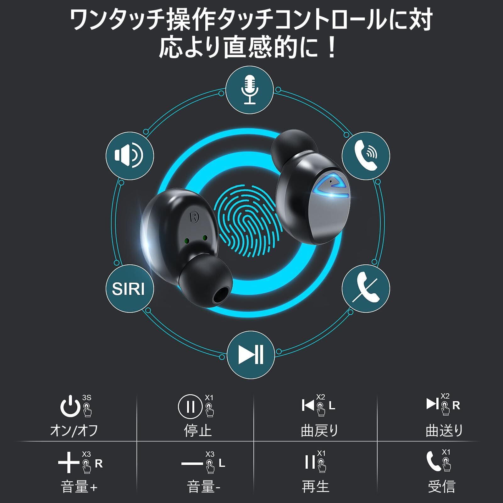 【最高のフィット感、手のひらサイズ】何千人もの耳の形状をスキャンし、その結果を最先端のアルゴリズムによるシミュレーションで解析して設計されて、最適な音質に調整しながらしっかりと耳にフィットしたイヤホン本体を設計しました。さらに、3種類のイヤーチップ(S/M/L)が付属しているため、耳に合わせて付け替えが可能です。外出時にポケットに入れることができますので、セットでどこに持ち歩いても邪魔になりません。簡単なタッチコントロールでで曲送り/曲戻し、音楽再生/停止、電話応答/終了/拒否、電源オン/オフ、音量調整、など基本的な操作が実現です