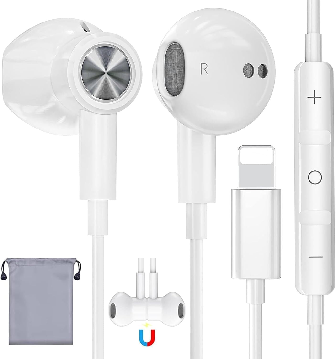 xunbida iPhone用 イヤホン 有線 マイク付き 有線 イヤホン 磁気設計 絡み防止 重低音 HiFi音質 音量調整 快適な装着感 人間工学 遅延なし 騒音低減 通話対応 小型軽量 防水防汗 通勤/仕事/ビジネス/ZOOM/Skype/ランニング iPhone/iPad/iPod/ios/Siriなど対応 収納袋付き | kki