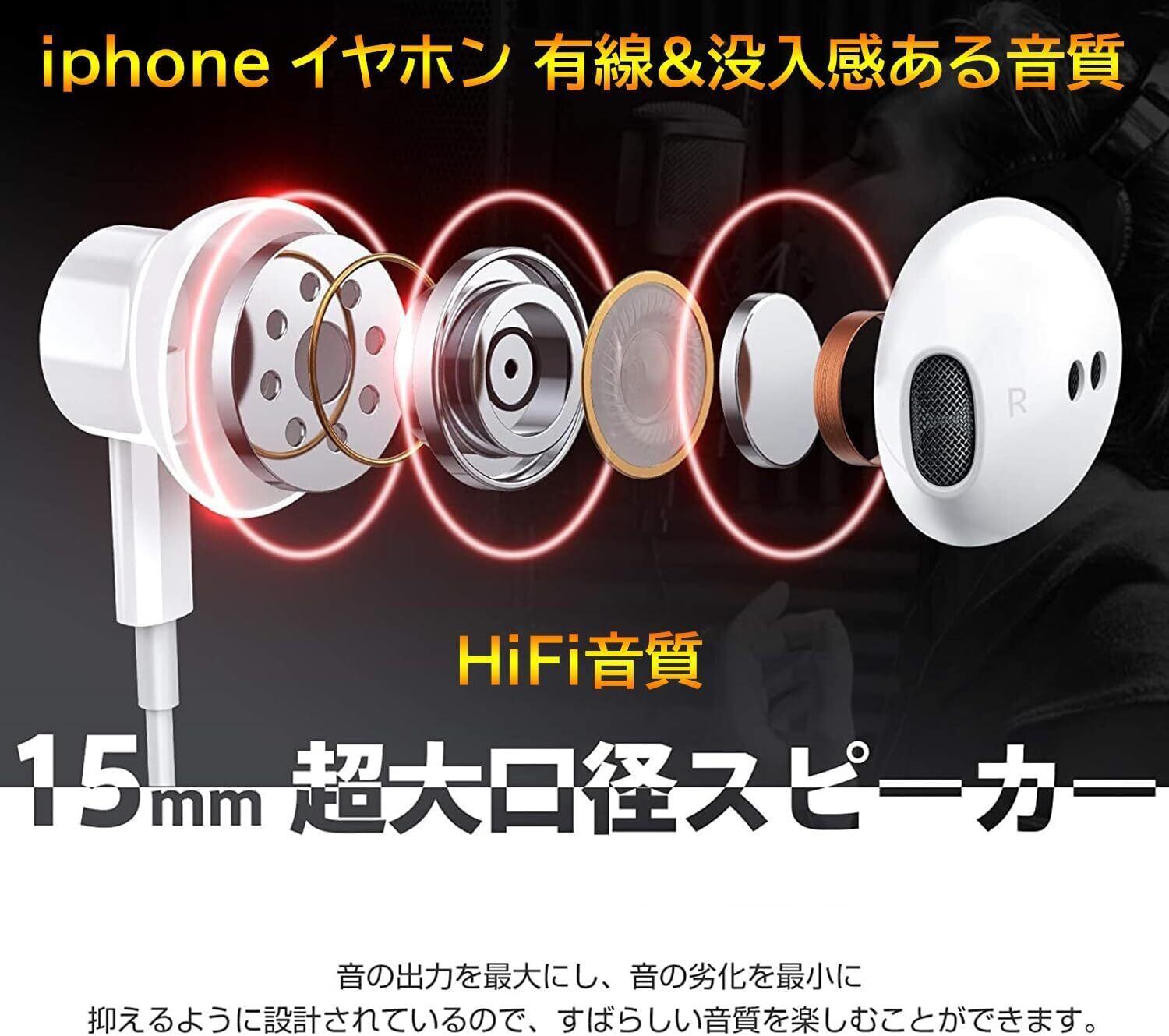 【没入感ある音質】iphone用有線 イヤホンはアップグレードチップを搭載し、最新改良の高品質スピーカーが搭載されており、複合鼓膜ダイナミックドライバーを備えており、イヤホンは内蔵の前後の振動膜アップグレードし、HiFi高音質に対応し、音質劣化・遅延などを効果良く軽減し、純音信号がそのまま高速に伝送し、高音から重低音まで歪みのなく迫力な音質を伝達します。まるでコンサート会場のような雰囲気です。また、このイヤホンは外部のノイズを効果的に遮断することができます。そのため、電車やエレベーターなどの公共の場所でも、音漏れを気にする必要がありません。音楽をよりクリアに聴くことができます。全ての音楽ファンにおすすめの製品です。
