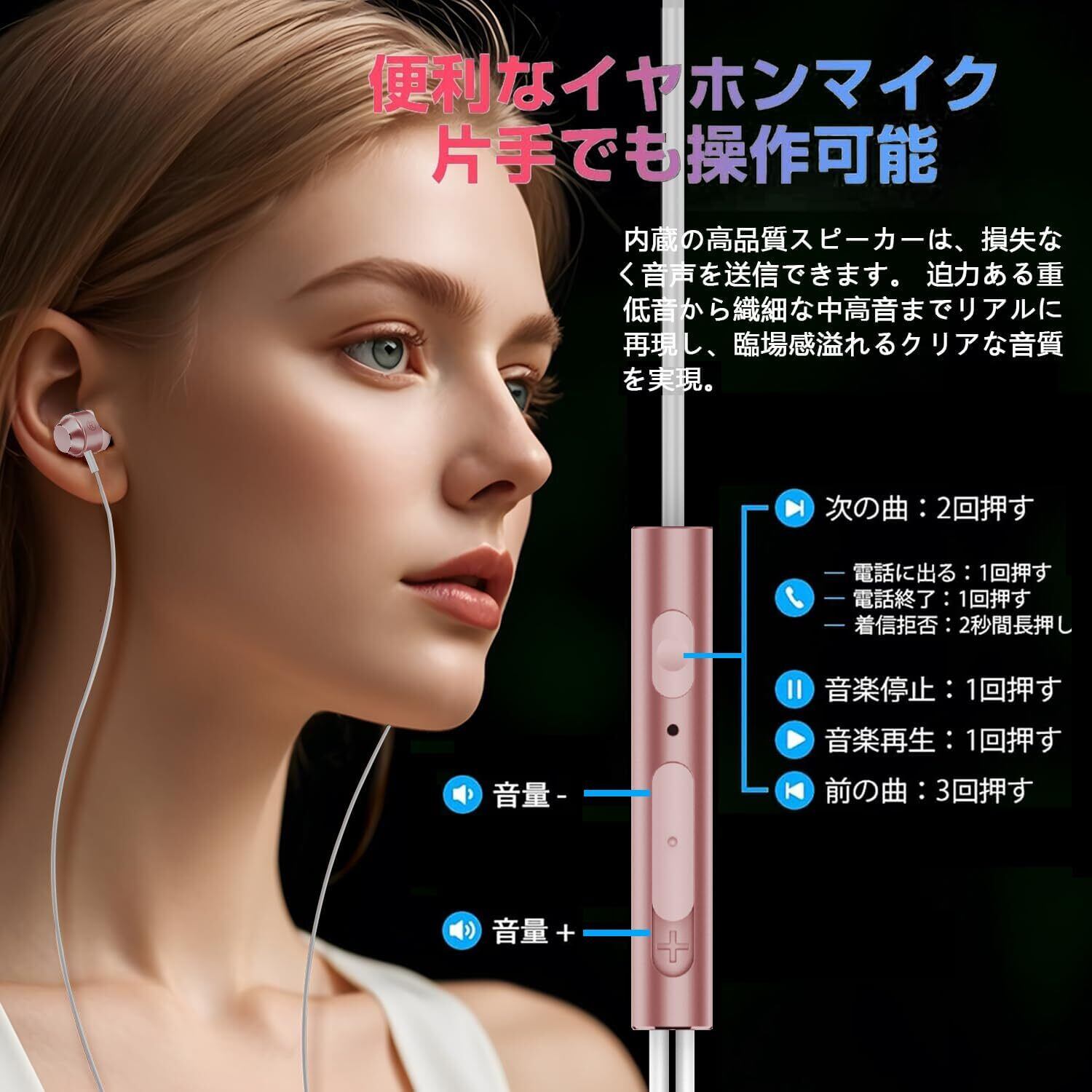 【2025改良新型モデル】Eikokiwa 有線 イヤホン 3.5mm 有線 イヤホン 内蔵マイク リモコン付き クリア通話 ハイブリッドノイズ遮断 重低音 磁気式 絡み防止 人間工学 快適な装着感 高遮音性 カナル型 音漏れ防止 軽量 防水iPhone/Android/Galaxy/OPPO/AQUOS/Xperia/iPadなど対応 (ピンク)