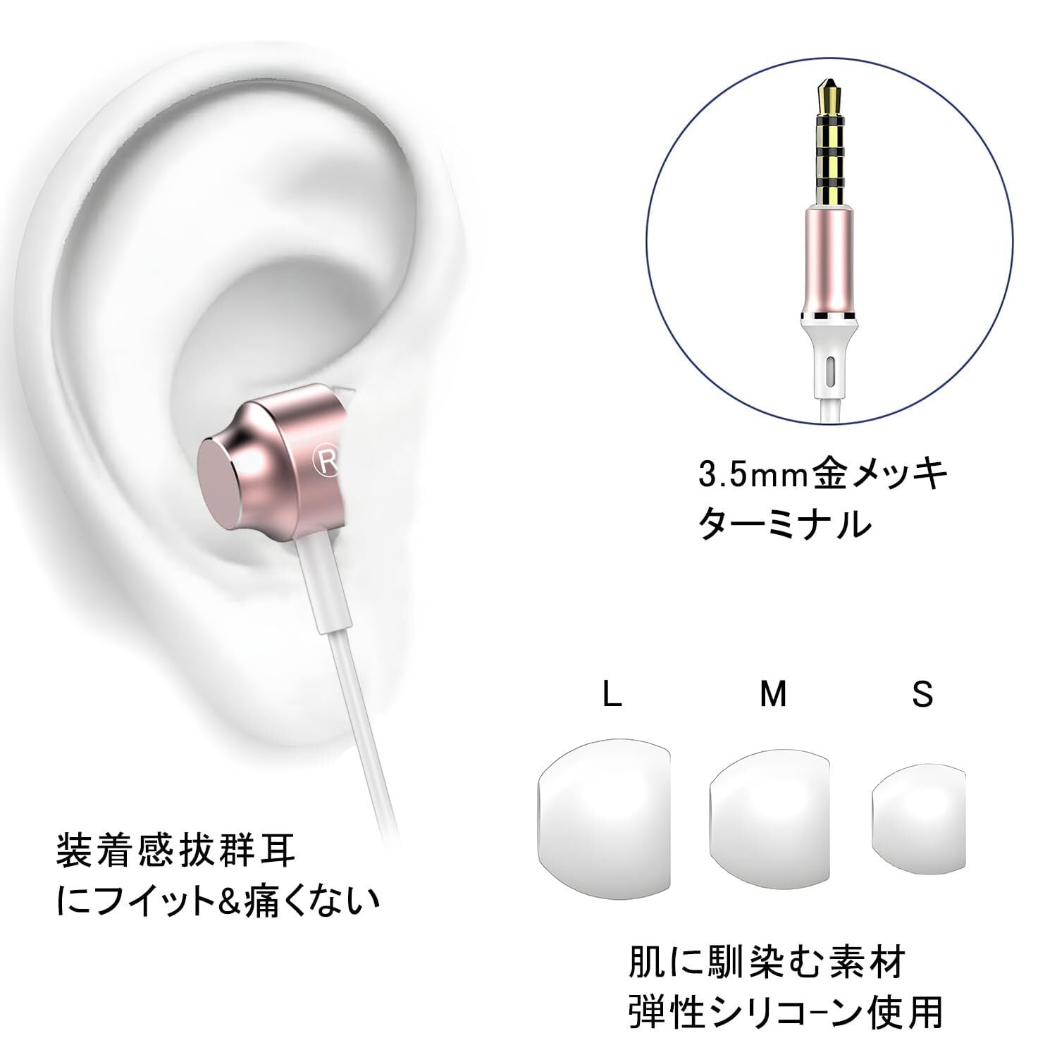 【2025改良新型モデル】Eikokiwa 有線 イヤホン 3.5mm 有線 イヤホン 内蔵マイク リモコン付き クリア通話 ハイブリッドノイズ遮断 重低音 磁気式 絡み防止 人間工学 快適な装着感 高遮音性 カナル型 音漏れ防止 軽量 防水iPhone/Android/Galaxy/OPPO/AQUOS/Xperia/iPadなど対応 (ピンク) | kki