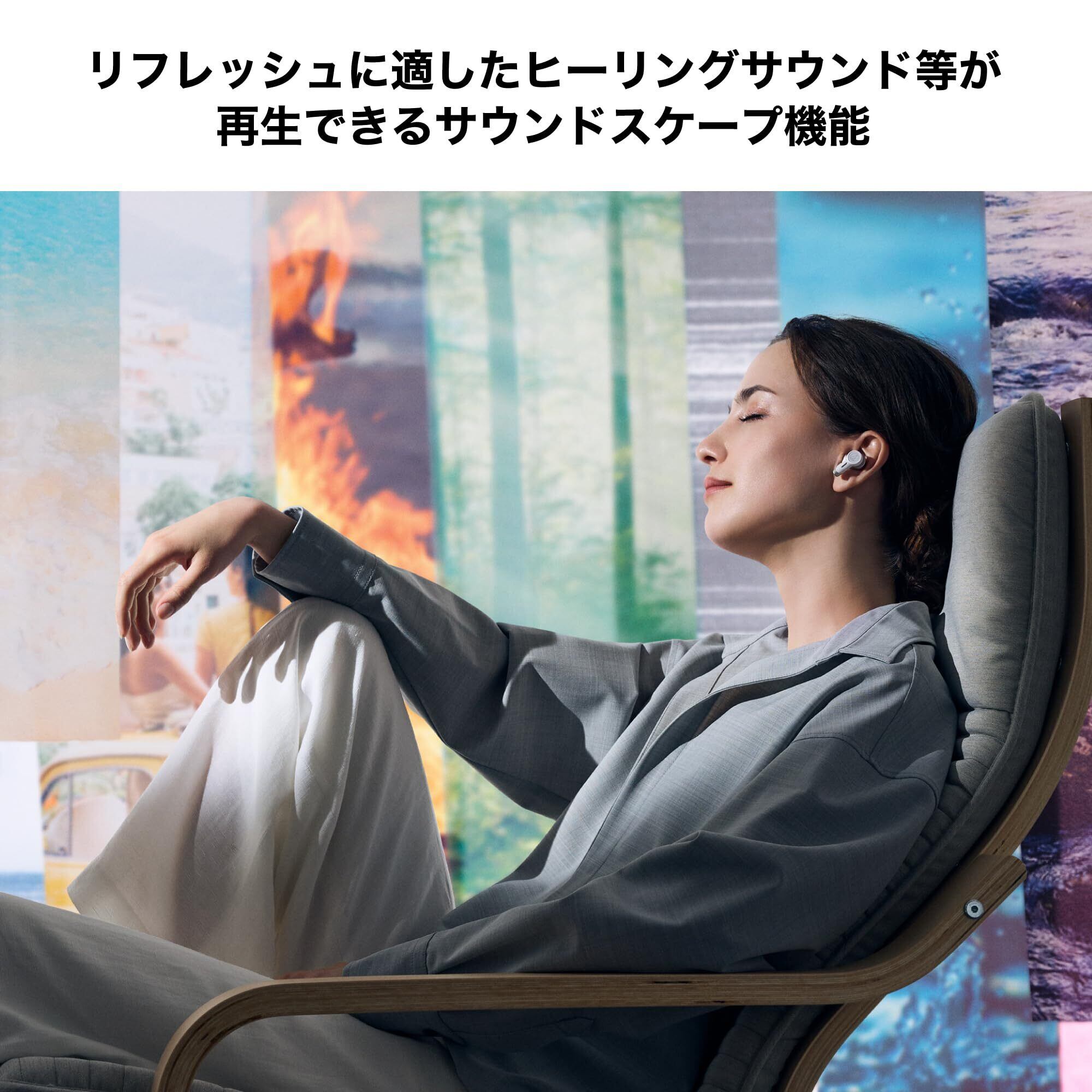 今ほしい静寂空間を体感できるハイブリッドデジタルノイズキャンセリング技術:左右のイヤホンに最新のノイズ検出用MEMS マイクを2 基ずつ搭載し、ノイズキャンセリング性能に直結するマイクのSN比が向上することで環境ノイズを細部まで拾い、高精度ノイズキャンセリングプロセッサーに伝送します。新開発の高感度ドライバーは、微弱で細やかなノイズまで打ち消す逆位相の音波を出すことができます。ノイズ検出用マイクとドライバー性能の向上により、前モデルで好評いただいたノイズキャンセリング性能をさらに強化しています。