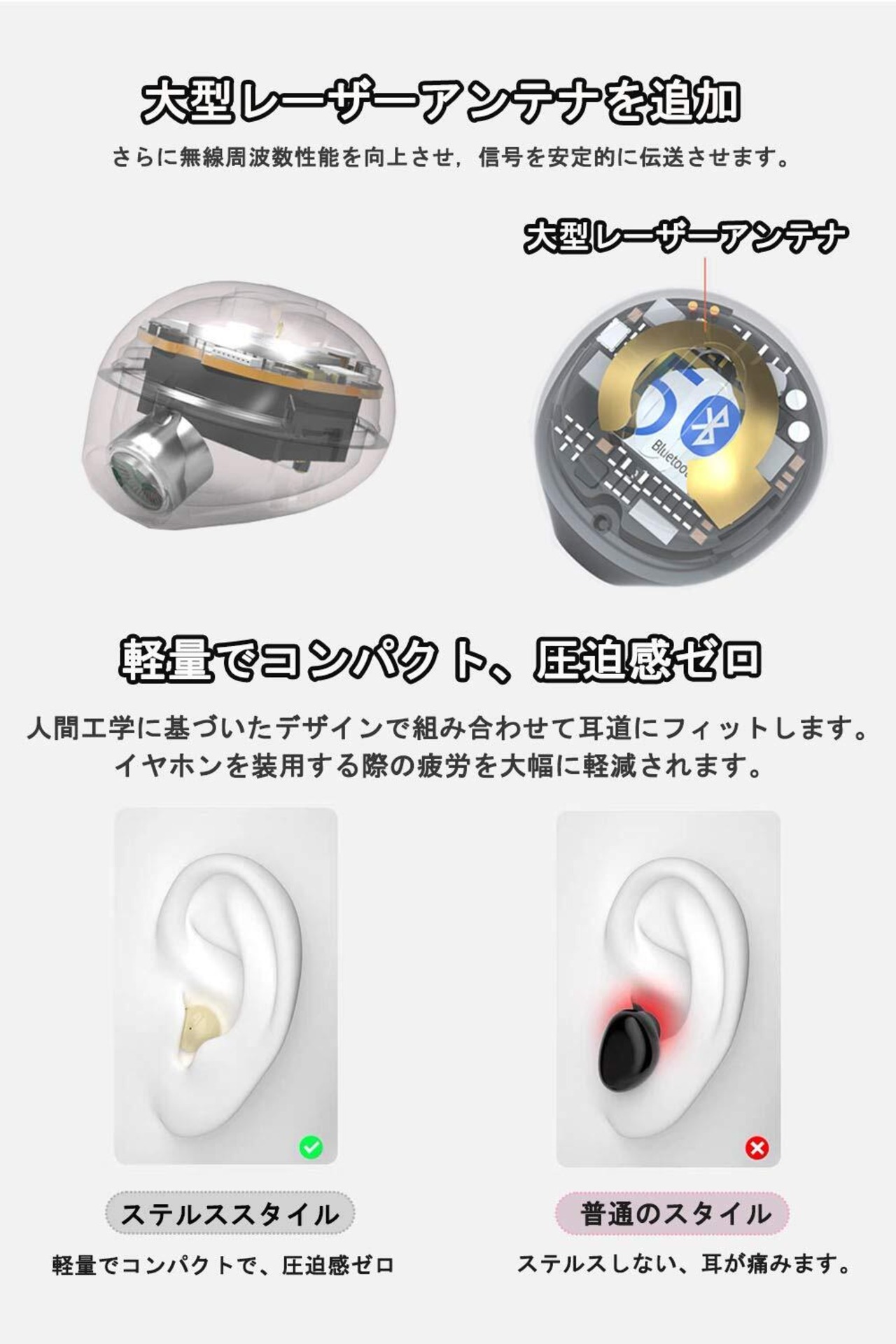#急速充電用ケーブルや急速充電用アダプタには適用されません。(QCマーク付き充電製品は一切使用できません)【ステルス設計&左右耳兼用】本体はわずか3gで、イヤホンは形も小さくて、サイズがわずか(1.8×1.6×1.2)cmで、小型で誰かに見つけにくく。 左右耳兼用のデザインで快適に装着できます。付けていることを忘れてしまう程の装着感、長時間に使っても負担与えません。運転&通勤通学&仕事&運動しながらハンズフリーや音楽を楽しめます。