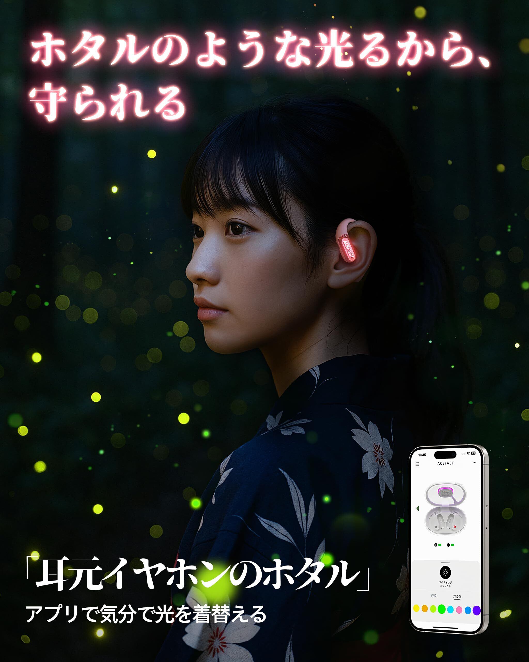 【世界が認めたデザイン – iF殿堂級デザイン賞受賞】世界的なデザイン賞「iF DESIGN AWARD 2025」を受賞した、革新的LEDイルミネーションオープンイヤーイヤホン「ACEFIT Pro」。40個のライトが織りなす発光マトリクスが、耳元でやさしく灯り、まるで夜を舞う“蛍”のように、あなたの存在をやさしく照らします。夜の通勤やランニング、夜道の帰り道—— この光は単なるデザインではなく、「ここにいるよ」と伝える安心のサイン。暗がりの中でも、自分の存在を周囲に示し、**安全性と個性を同時に叶える“見えるイヤホン”**です。さらに、耳を塞がないイヤホン設計により外音もしっかり取り込み、会話も周囲の音も聞こえるから、夜間のスポーツでも安心。専用アプリ「ACEFAST APP」で発光カラーやリズムを自由にカスタマイズし、**世界に一つだけの“パーソナルライティング”**を耳元に。