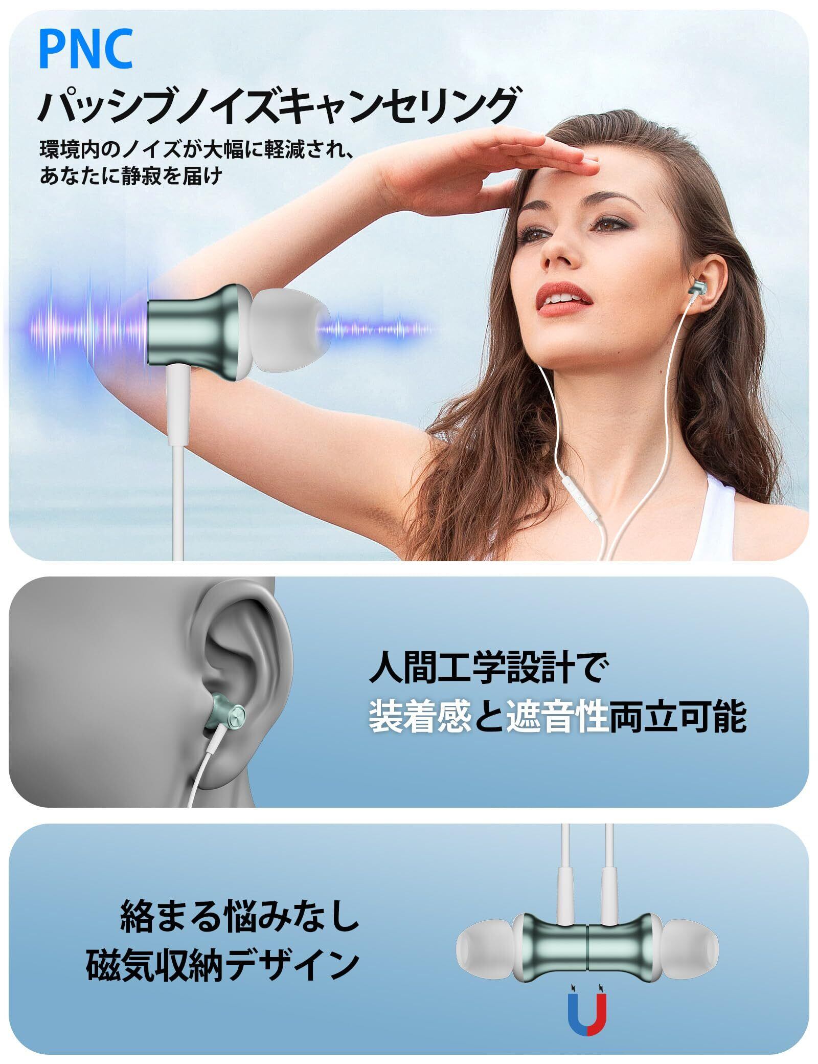 タイプcイヤホン 有線 対応iPhone16 イヤホン 通話可能 磁気設計 対応iPhone15 Pro max/iPad 10 Mini 7 6/iPad Pro/samsung Galaxy/Pixel 9 8a/AQUOS/Xperia/Xiaomi カタル型 Type-C イヤホン マイク付きHIFi音質 音量調節 通勤/テレワーク/オンライン会議 可愛い 収納ケース付き グリー | kki