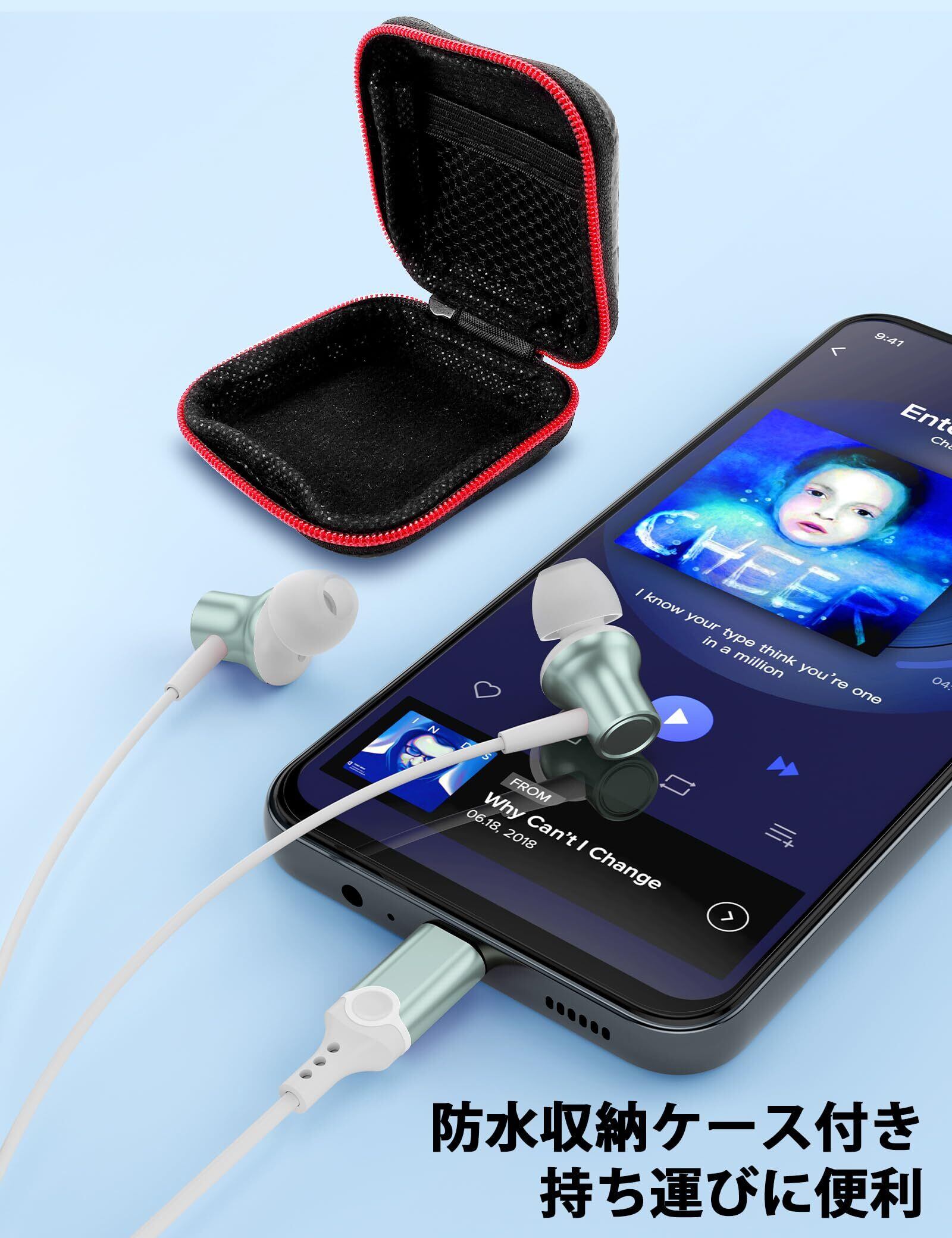 タイプcイヤホン 有線 対応iPhone16 イヤホン 通話可能 磁気設計 対応iPhone15 Pro max/iPad 10 Mini 7 6/iPad Pro/samsung Galaxy/Pixel 9 8a/AQUOS/Xperia/Xiaomi カタル型 Type-C イヤホン マイク付きHIFi音質 音量調節 通勤/テレワーク/オンライン会議 可愛い 収納ケース付き グリー